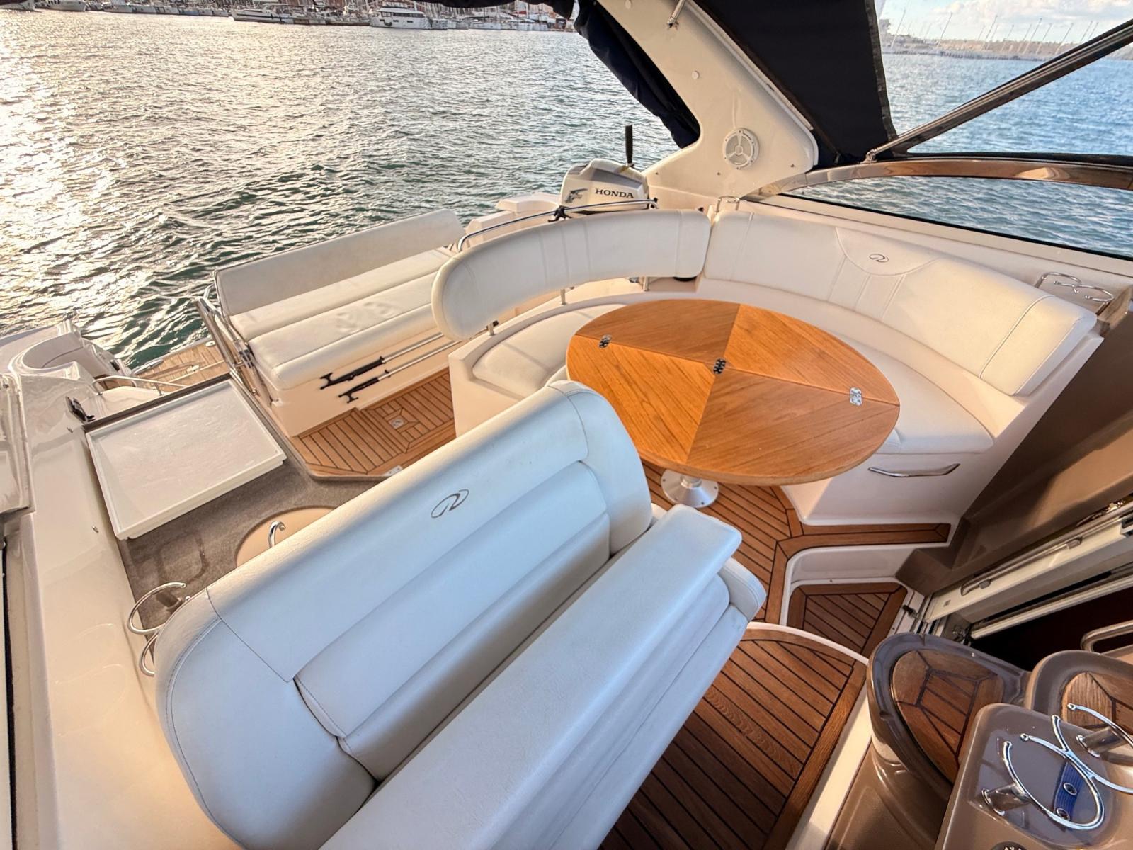Dotata di aria condizionata, generatore, elica di prua, pilota automatico, GPS, tendalini e cuscinerie.