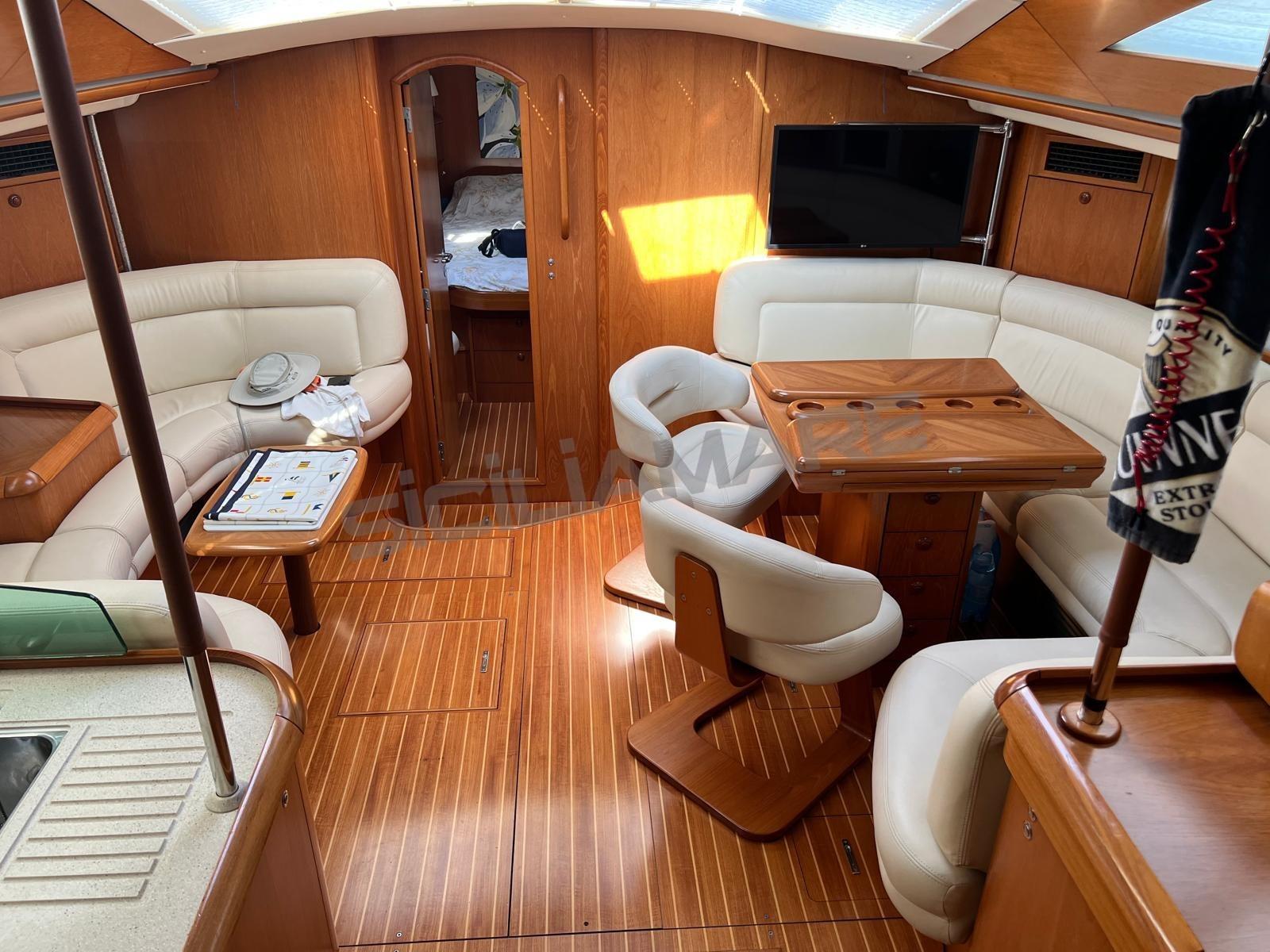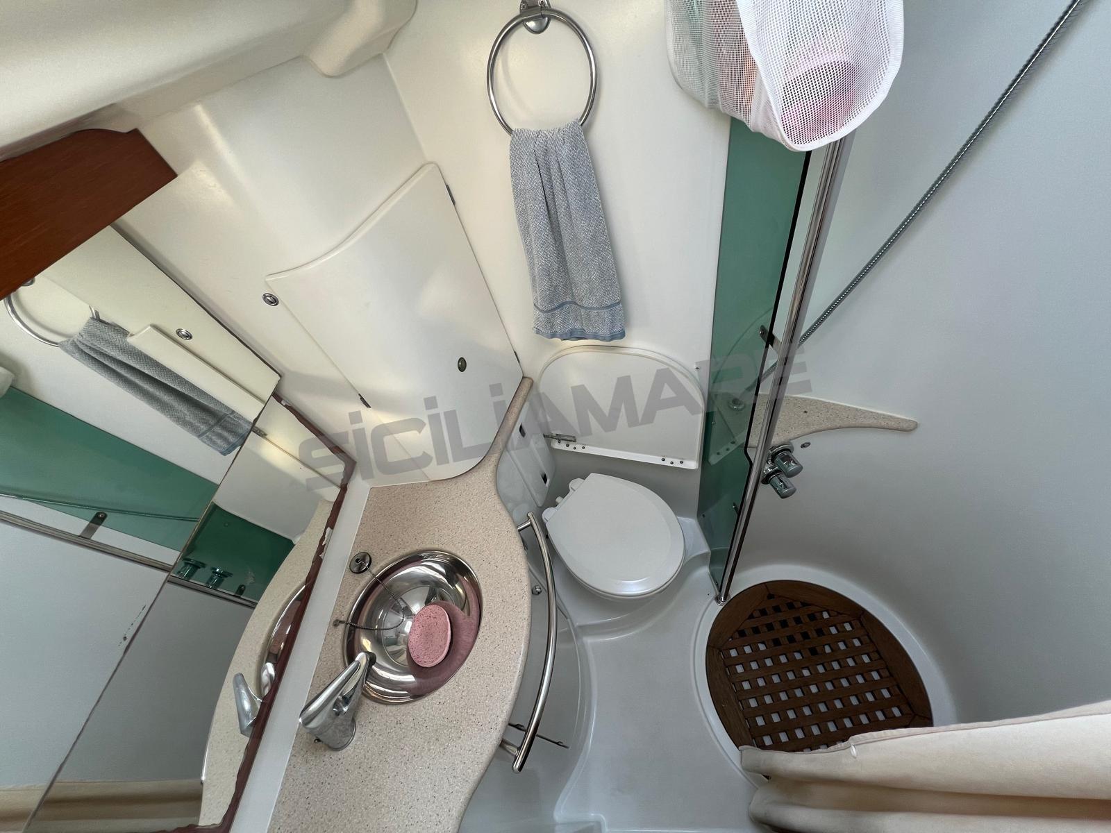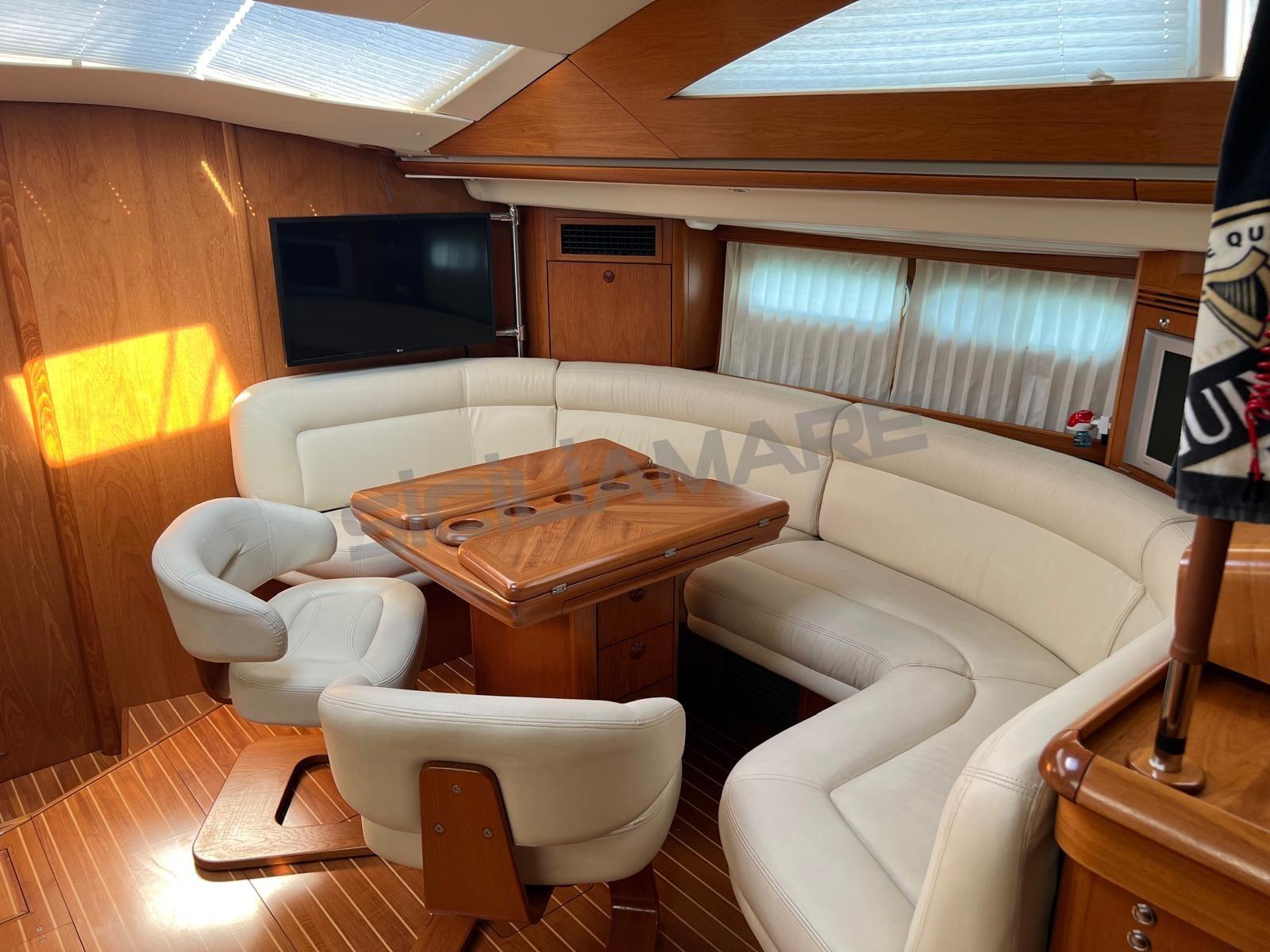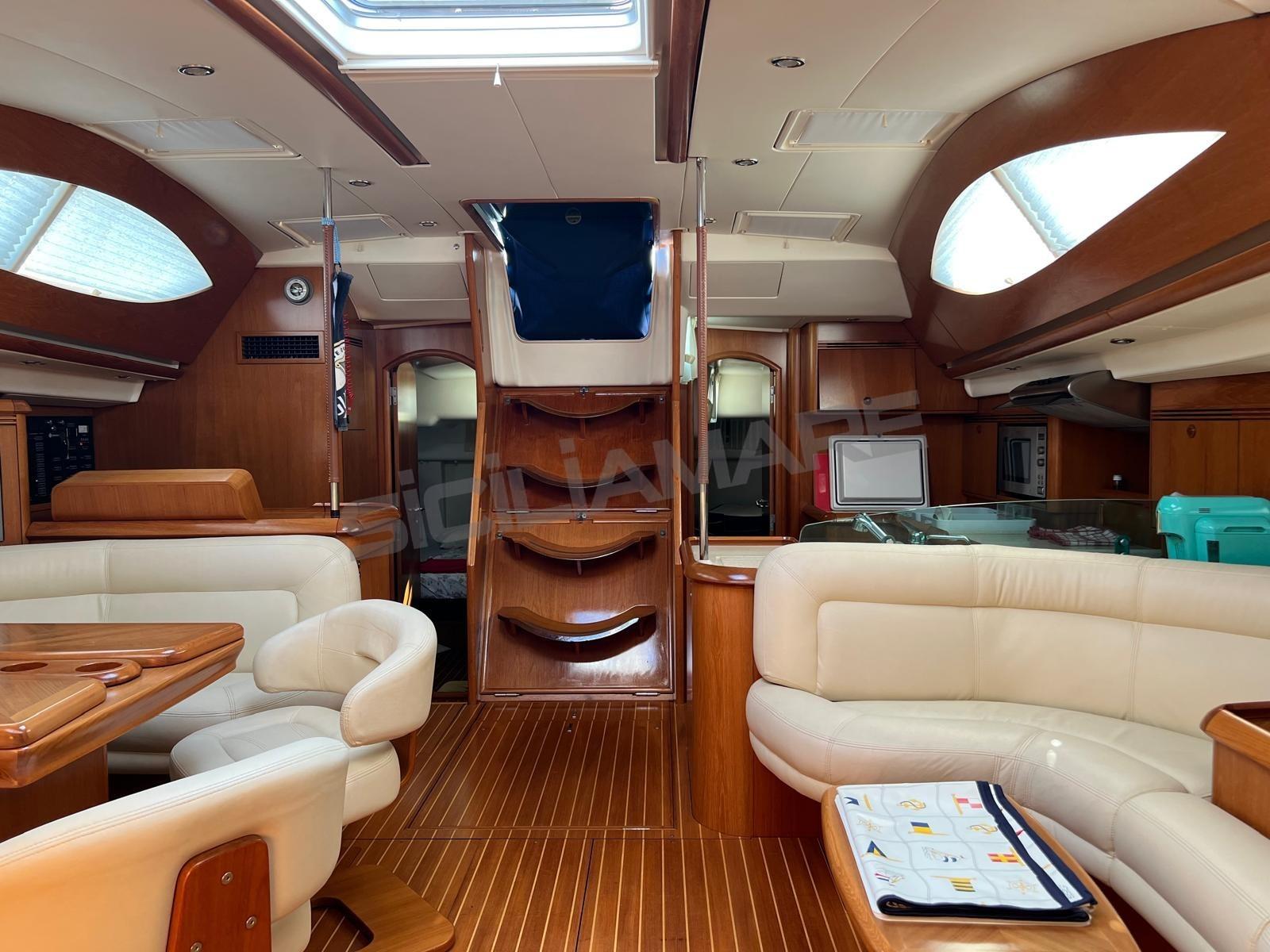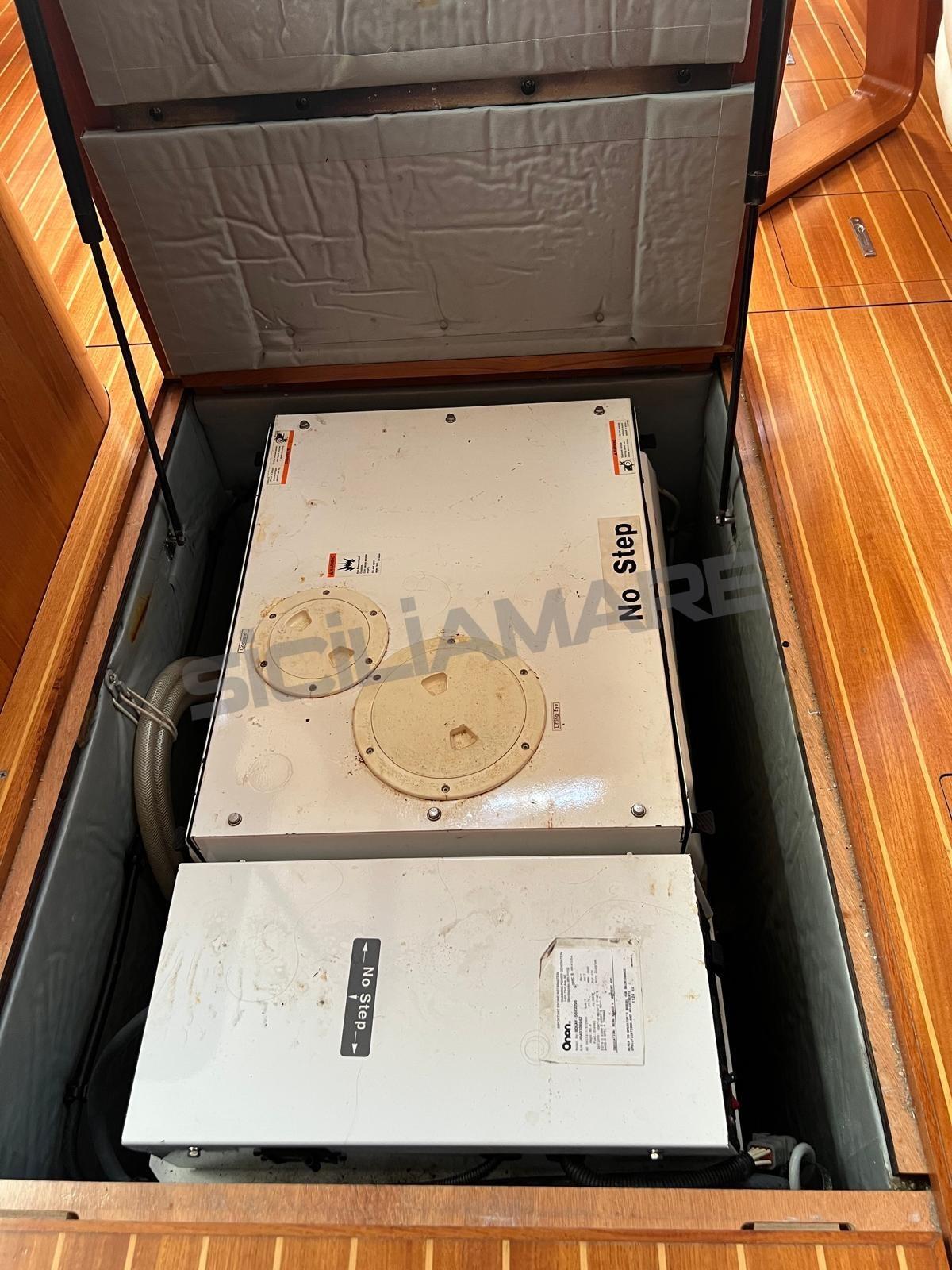 Boiler, Clima reversibile, Dissalatore, Pavimento interno in legno, Prese interne 12v, Prese interne 220v, 3 Serbatoio Acque Nere, 3 WC marino elettrico, WC marino manuale.