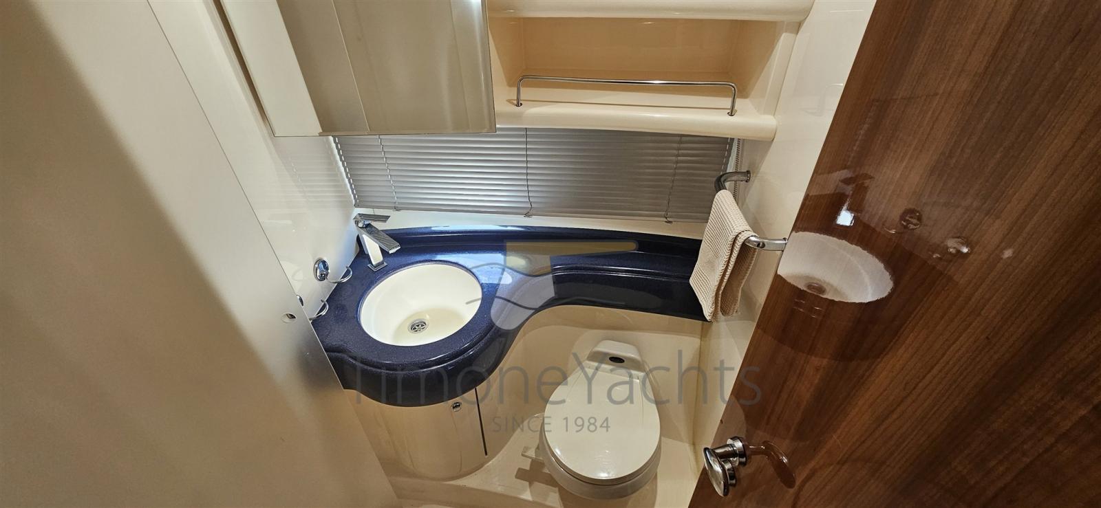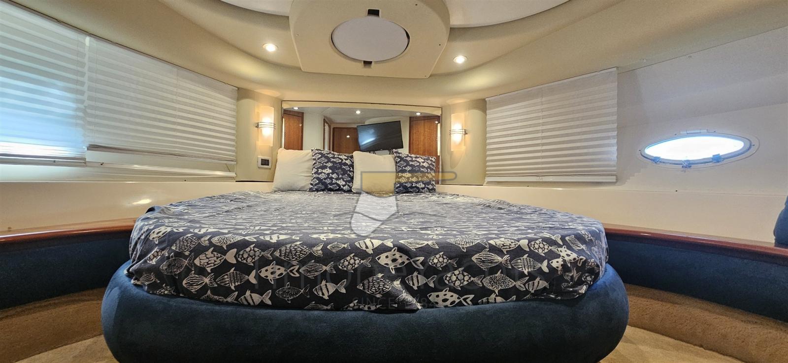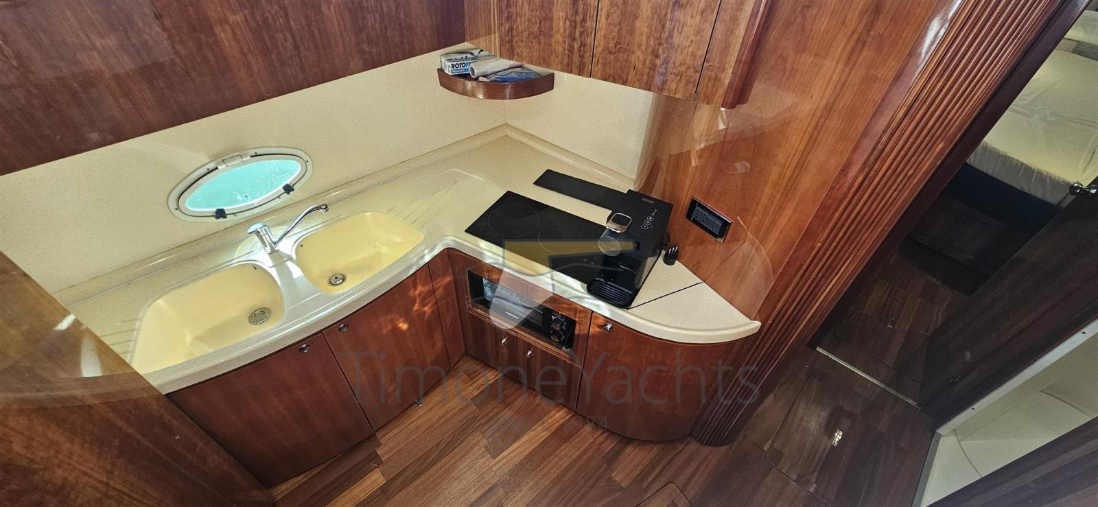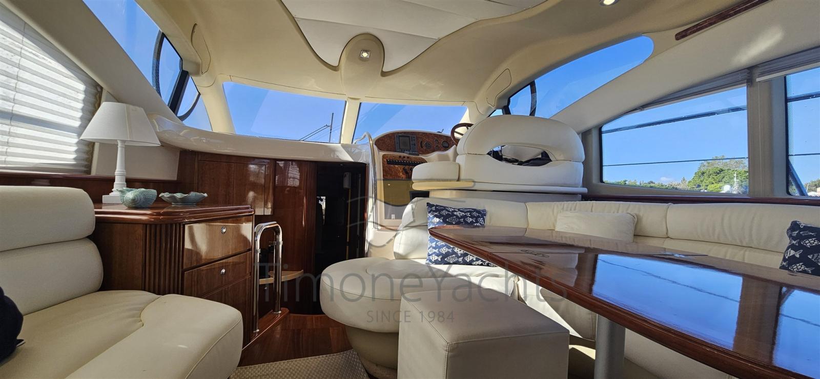 Gli spazi esterni sono ampi e ben sfruttabili, con flybridge attrezzato e zone prendisole che garantiscono una piacevole vita all’aperto. Gli interni risultano luminosi e accoglienti, con finiture di buon livello e una disposizione che assicura comfort e privacy agli ospiti.