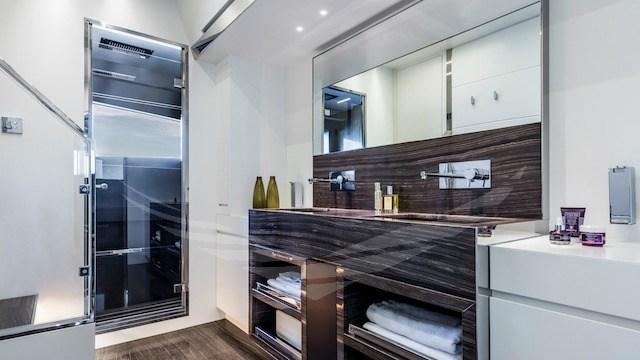 - Master cabin – bathroom: additional bench with storage and cabinet