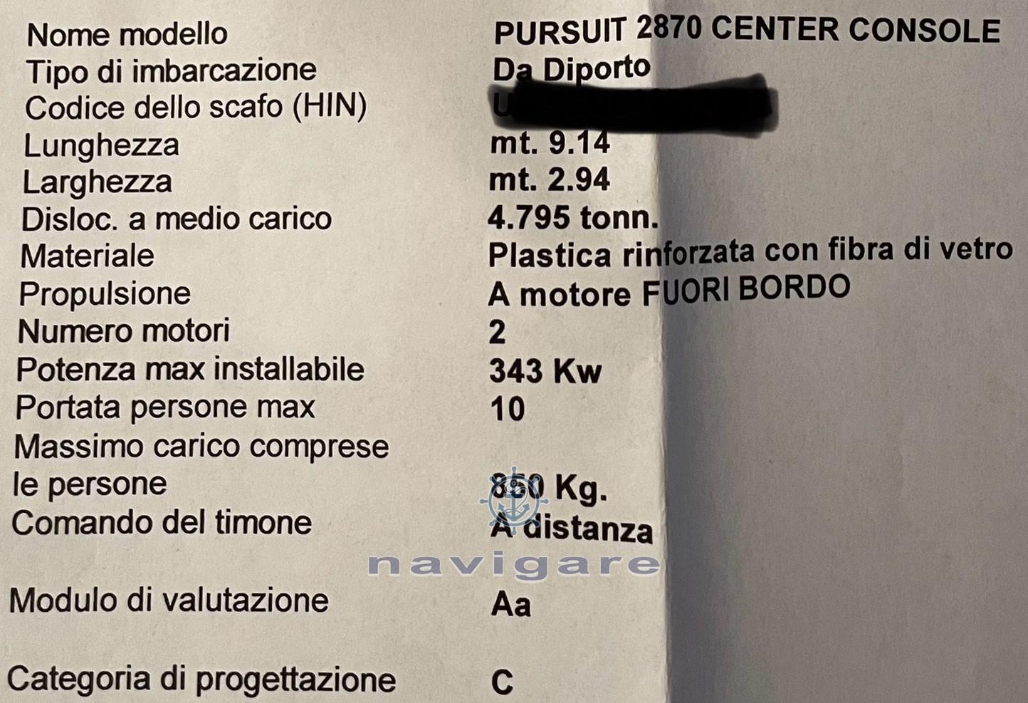 PURSUIT 2870 CC DEL 2003 CON 2x225 HONDA 4T CON 700 ORE DI MOTO