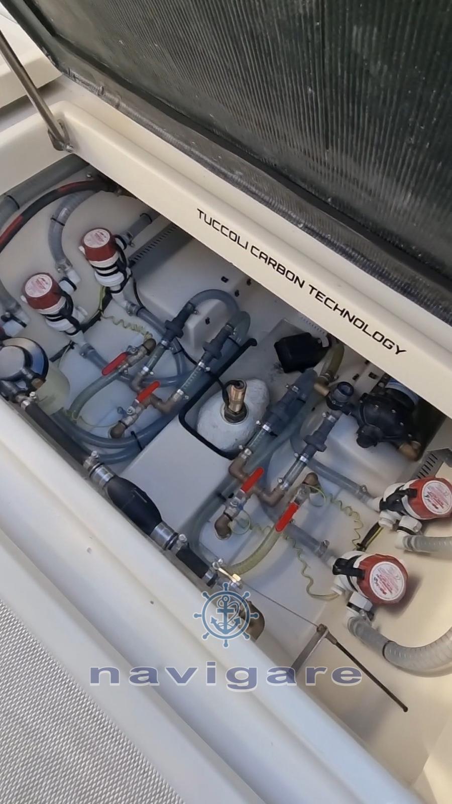 Un central consolle con coperta, accessori e linee d’acqua che sono state progettate con la consulenza del 33 volte campione del mondo di pesca Marco Volpi,