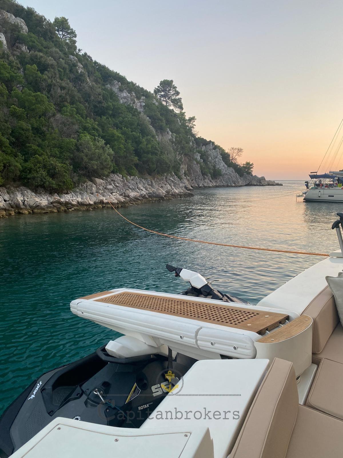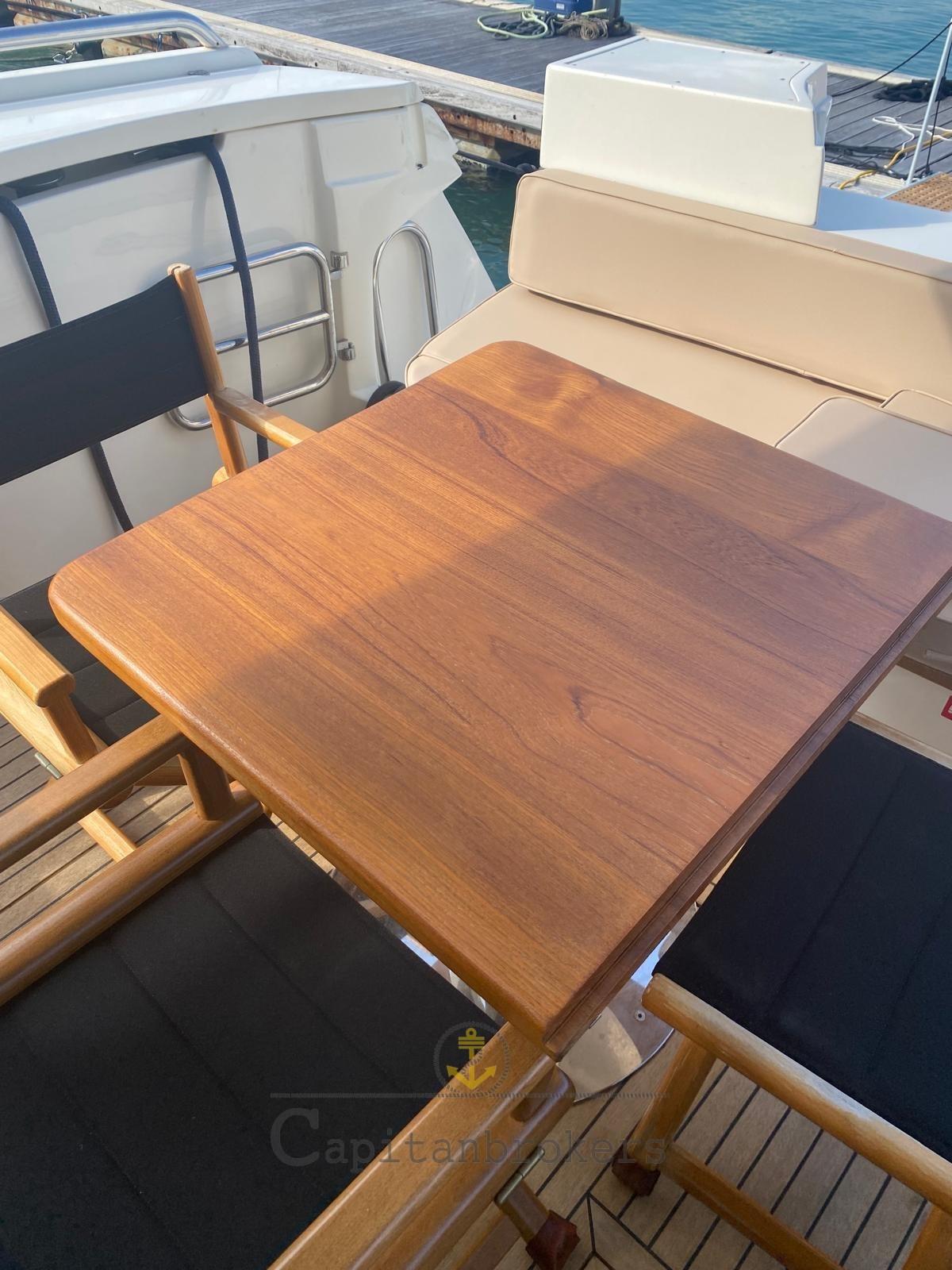 Allarme motore, Allarme sentina, Autoclave, Luci subacquee (led), Passerella (estraibile), Piattaforma, Pompa di sentina automatica, Pompa di sentina manuale, Porta ingresso, Pozzetto Teak, Presa 220V banchina, Salpa Ancore Elettrico, Scaletta da bagno (teak e acciaio), Tavolo pozzetto (teak con piedi in acciaio), Tender (+ mt fb), Tromba.