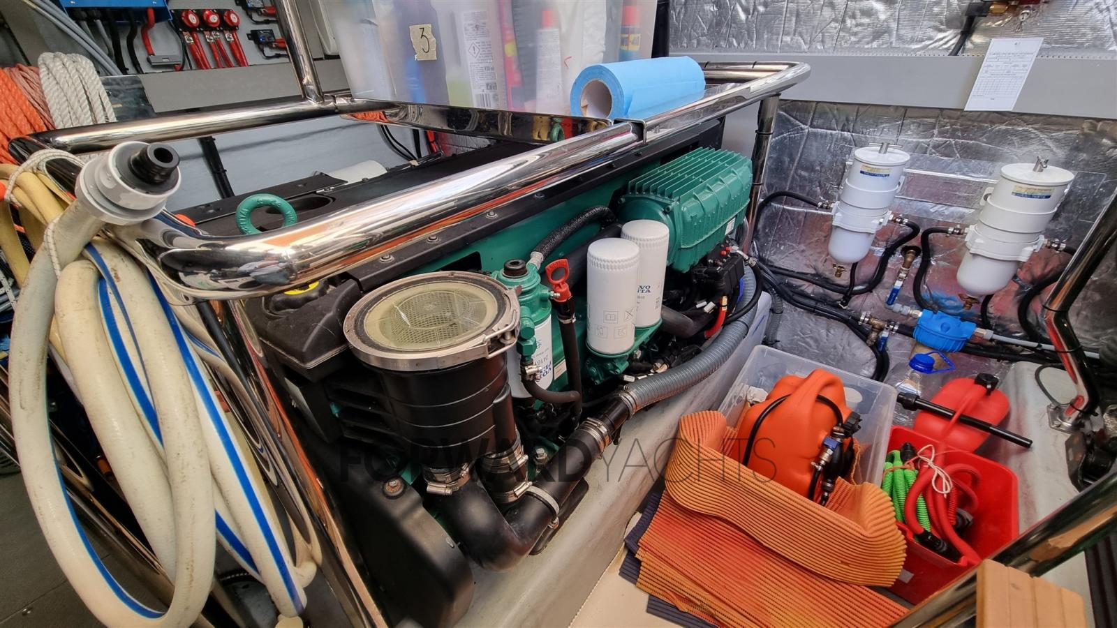 Motorizzazione Volvo Penta 480 CV pochissime ore moto e accessori di pregio: elica di prua, climatizzatore in ogni cabina, coperture invernali complete, apertura vano motori elettrico, passerella idraulica maggiorata e modificata, dissalatore, generatore 10 kW.