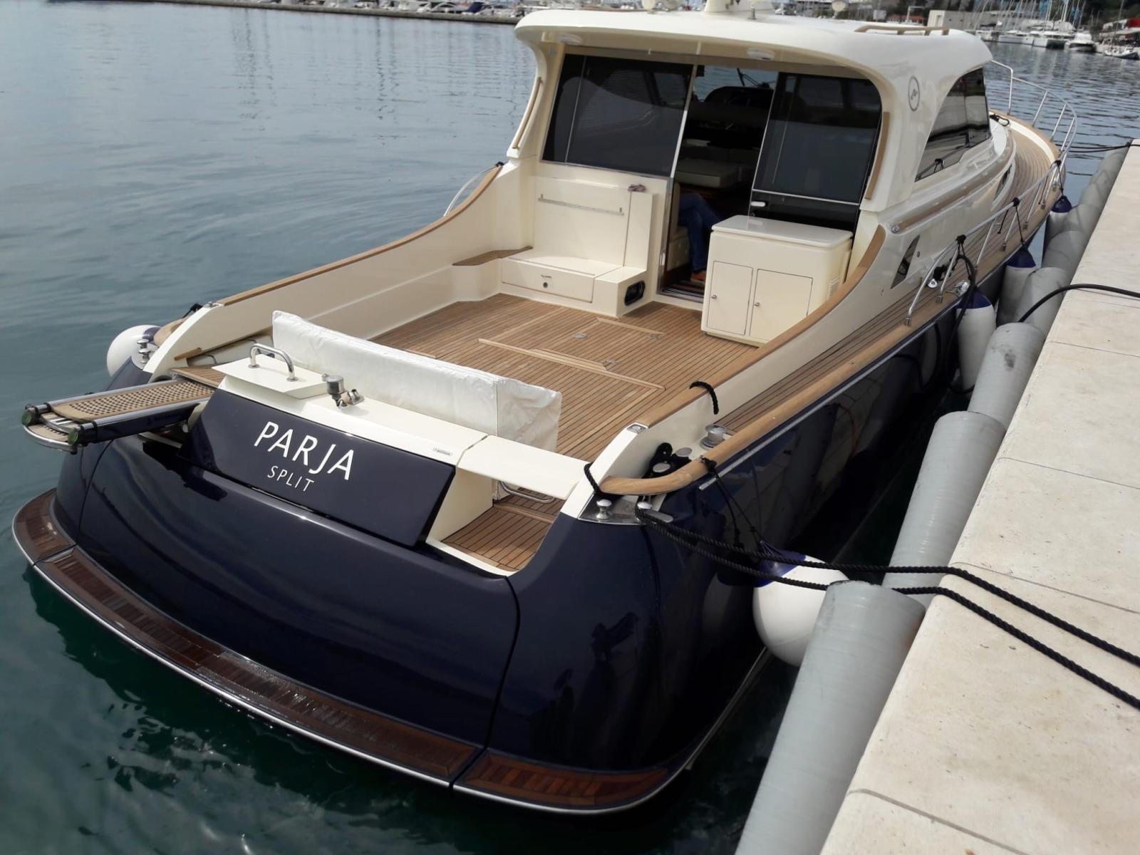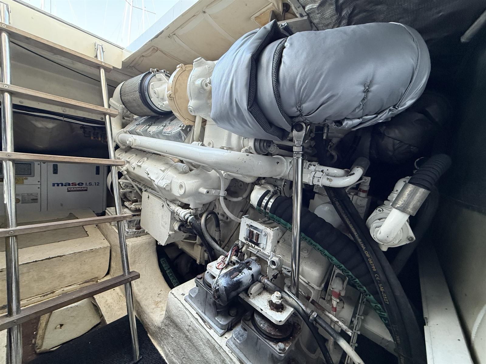 Allarme motore, Allarme sentina, Cavo corrente di banchina, Corrimano, Doccia esterna, Doppia timoneria, Flap idraulici (N°2), Impianto antincendio, Indicatori Flaps, Lavandino nel Pozzetto, Passerella (IDRAULICA), Piattaforma, Pompa di sentina automatica, Pompa di sentina manuale, Pompa per Acqua di Mare, Ponte in teak, Pozzetto Teak, Presa 220V banchina, Raddrizzatore, Salpa Ancore Elettrico, Scaletta da bagno, Tromba, Winch tonneggio di poppa.