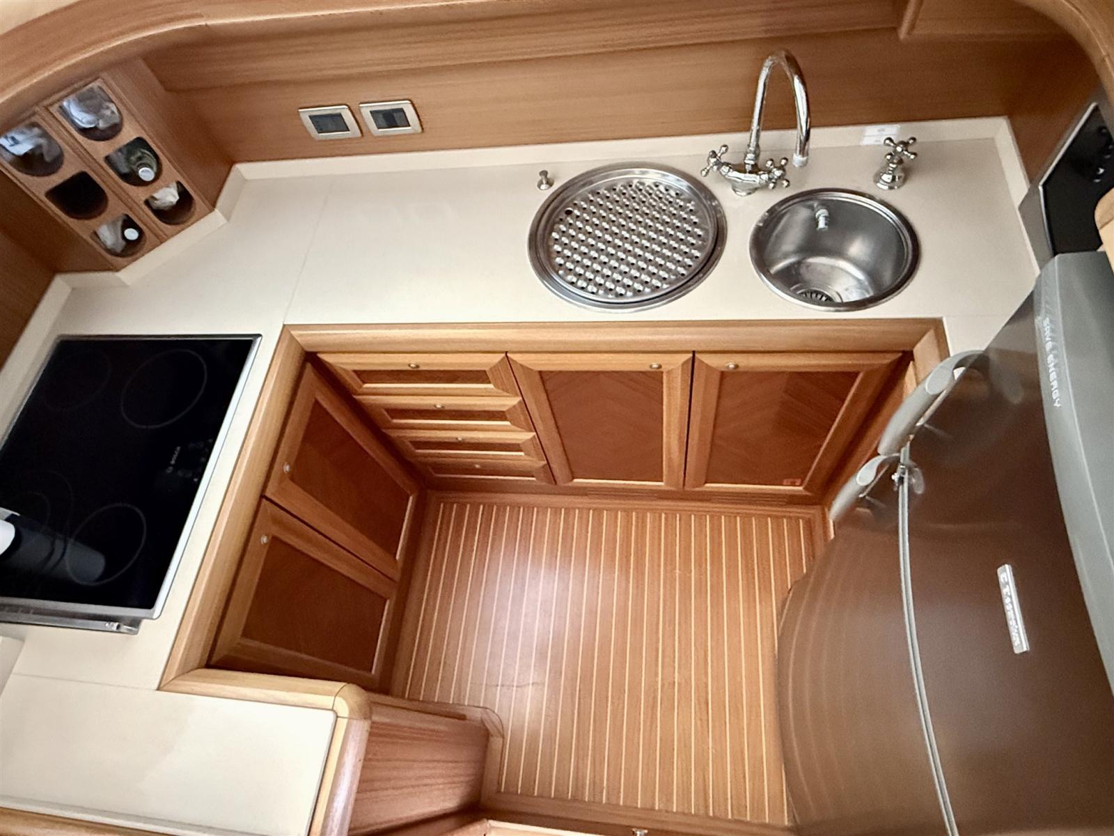 Boiler, Dissalatore, Indicatore del serbatoio del carburante, Pavimento interno in legno, Prese interne 12v, Prese interne 220v, Serbatoio Acque Nere, WC marino elettrico.