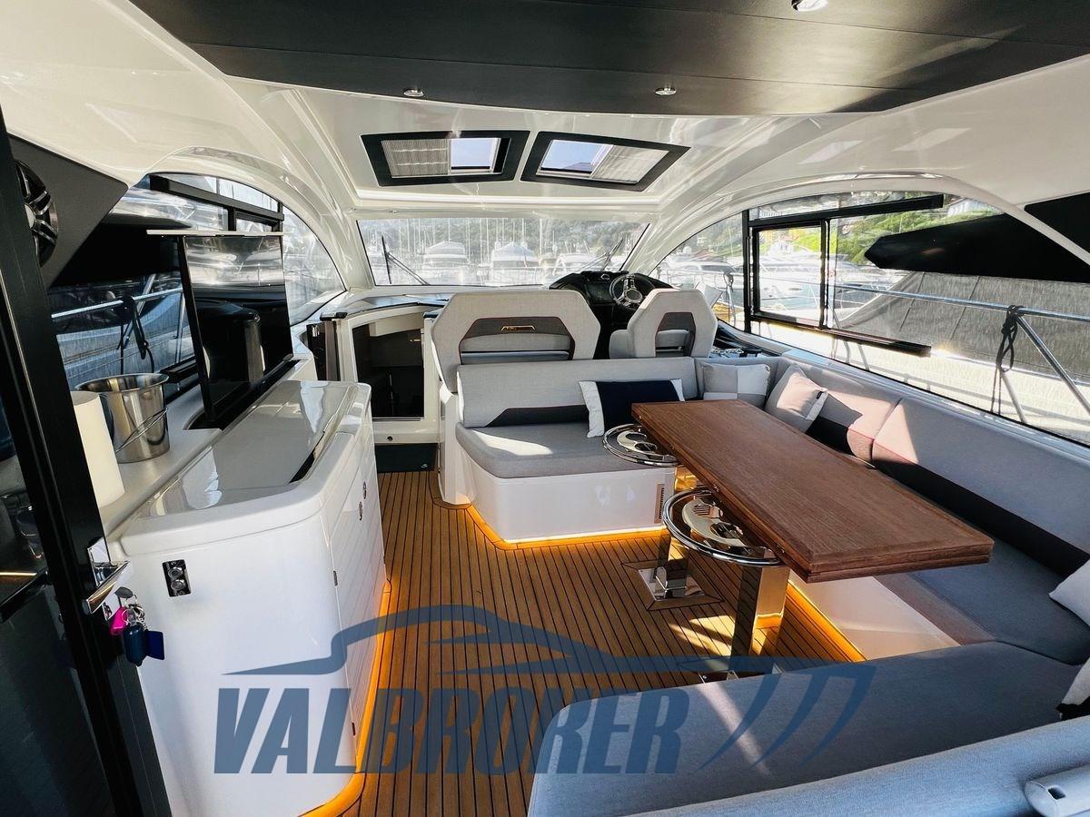 Hard top sportivo ed elegante. Dispone di ampi spazi esterni, tra cui un prendisole di poppa e una spaziosa piattaforma da bagno idraulica. Sottocoperta troviamo tre cabine: matrimoniale a prua, matrimoniale ospiti e cabina con letti a castello.