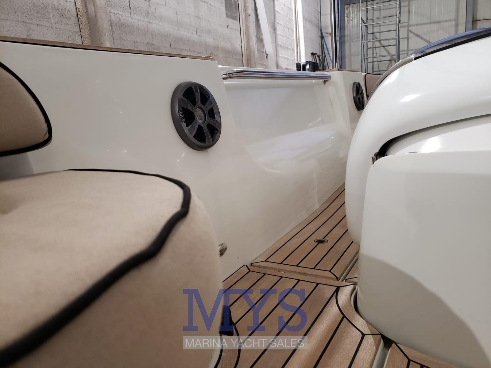 Allarme motore, 2 Batterie, 4 Bitte Abbattibili, Cavo corrente di banchina, Doccia esterna, Fissaggio dell’ancora, Luci di cortesia, Luci subacquee, Piattaforma, Pompa di sentina automatica, Ponte in teak, Pozzetto Teak, Presa 220V banchina, Salpa Ancore Elettrico, Scaletta da bagno, Tromba.