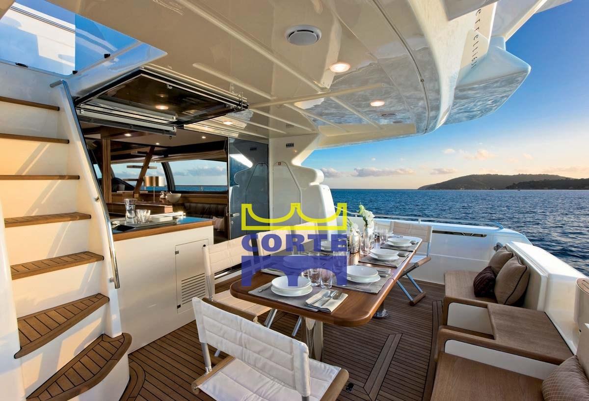 Bimini (sun top), Cuscineria di poppa, Cuscineria di prua, Cuscineria fly, Cuscineria Pozzetto.