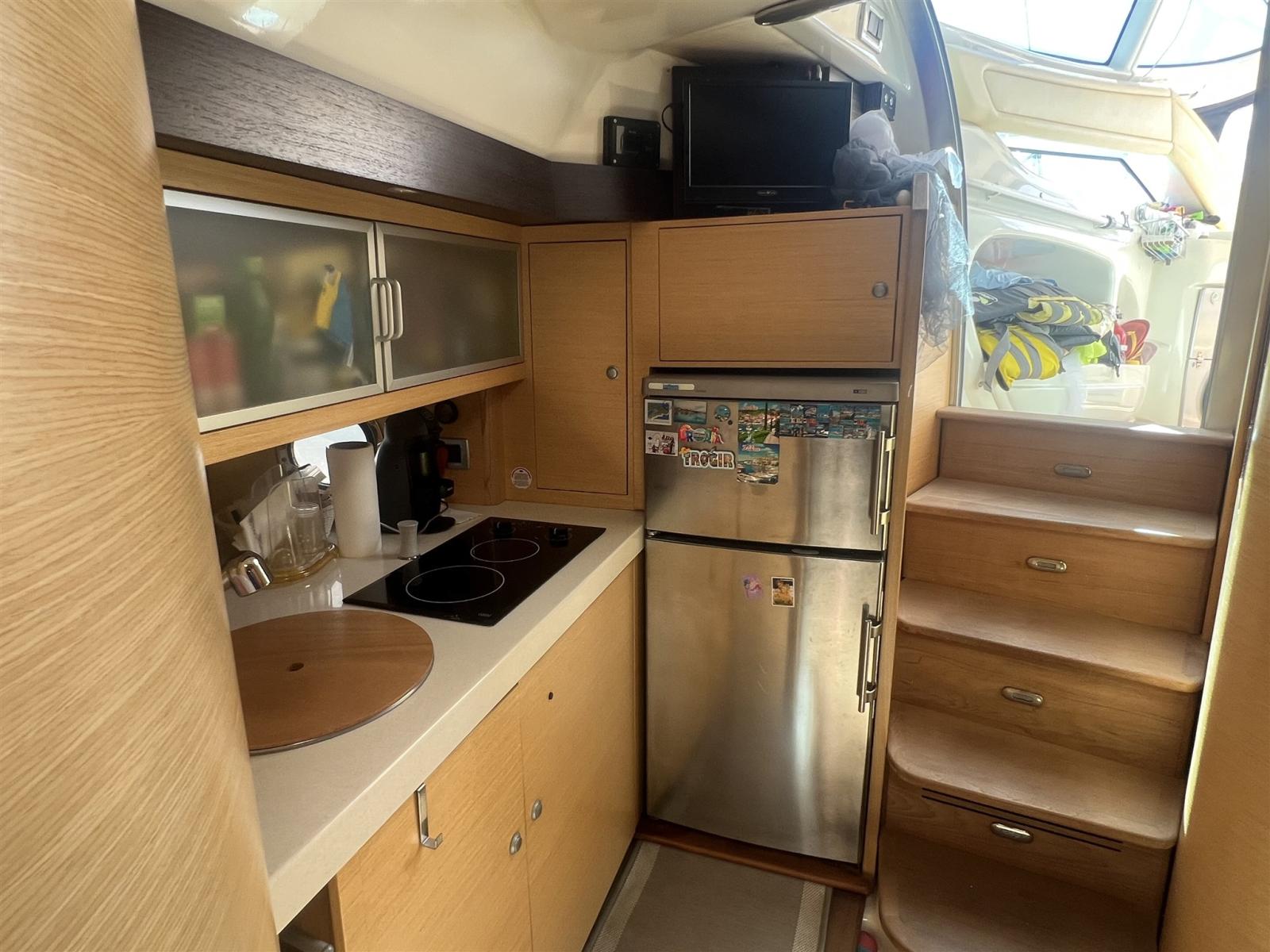 Acqua Calda, BBQ/ Grill, Boiler, Clima reversibile, Dissalatore, Impianto acque nere, Indicatore del serbatoio del carburante, Indicatore del Serbatoio dell’Acqua, Indicatore della pressione dell’olio nel motore, Indicatore della temperatura del motore, Pavimento interno in legno, Prese interne 12v, Prese interne 220v, Serbatoio Acque Nere, Telecamera, WC marino elettrico.