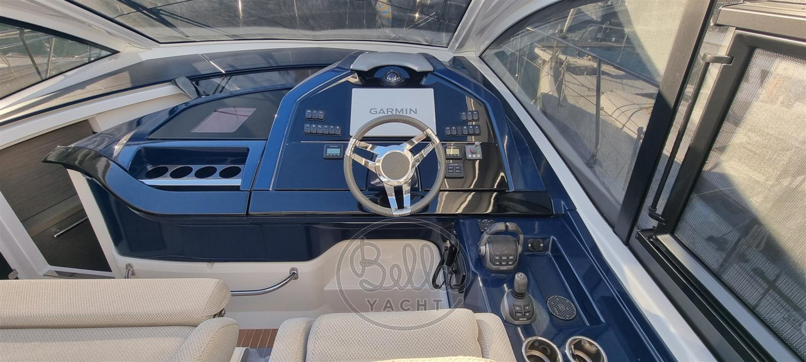Comando motori elettronico, Joystick, Plotter con antenna GPS, Radar (GARMIN), Sonar.