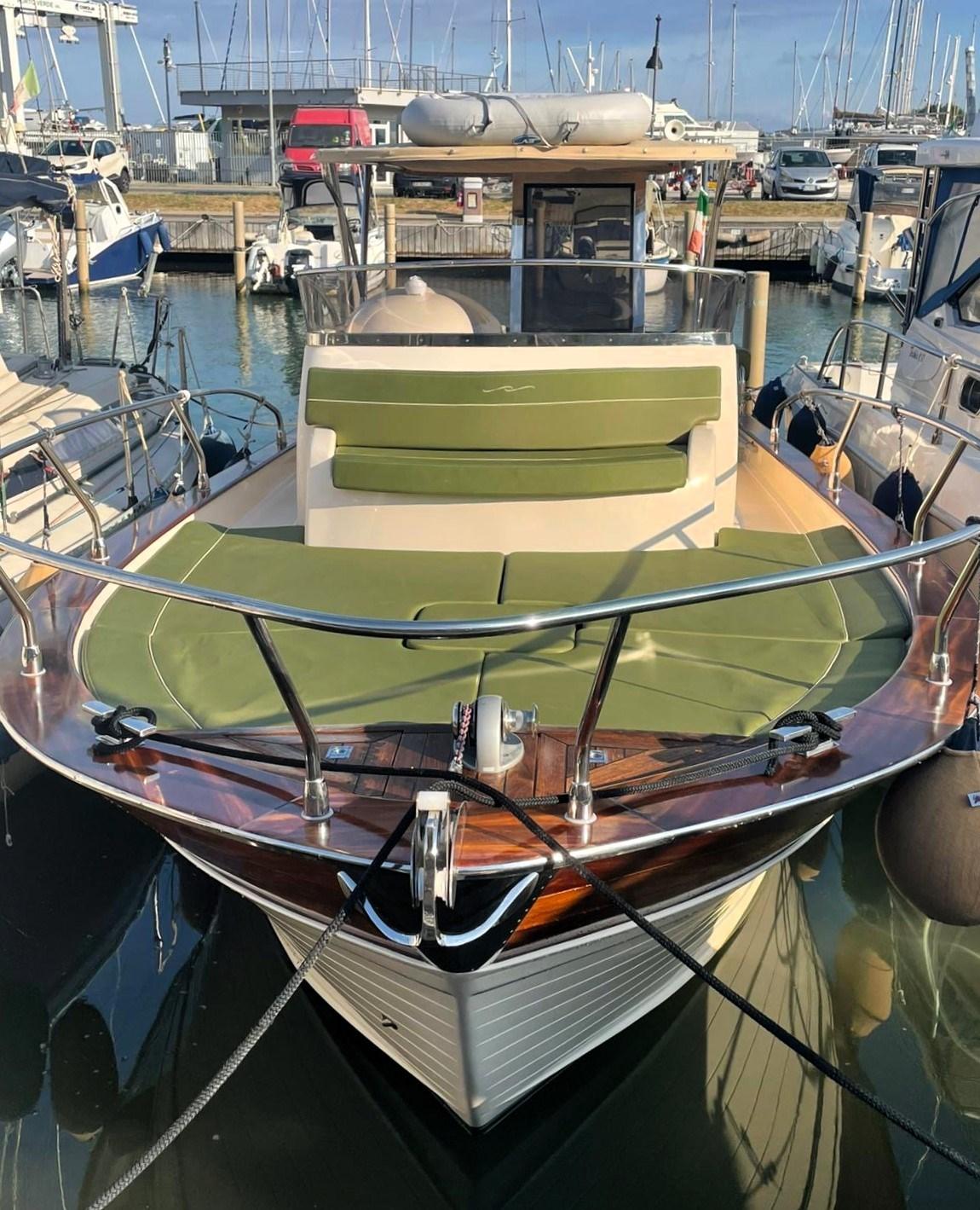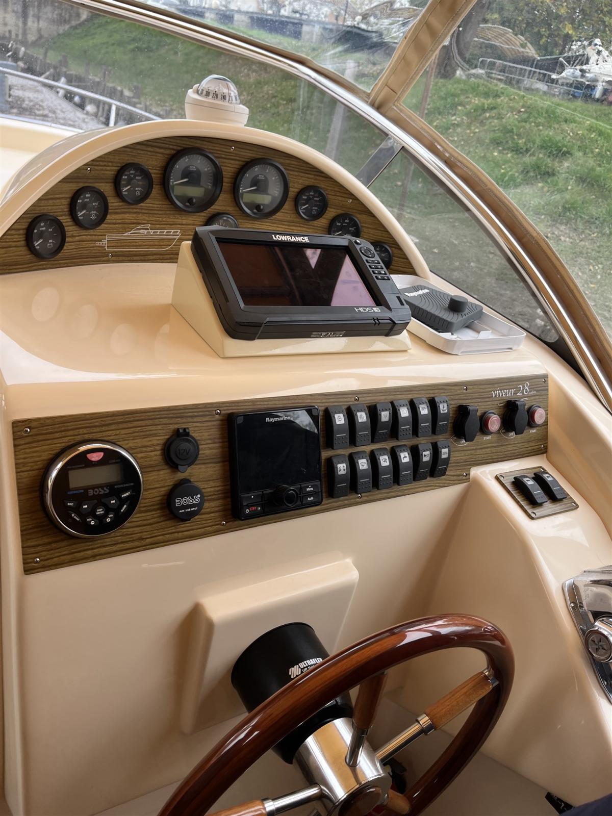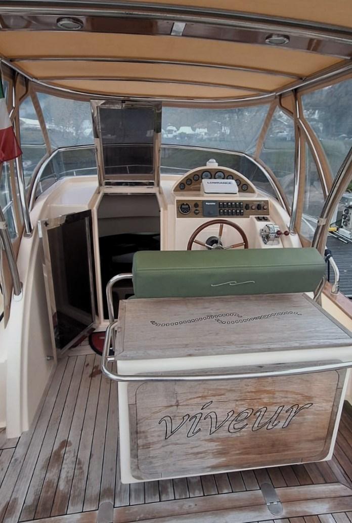 Viveur 28 Cabin costruito nel 2018 molto bello , dotato di ogni comfort . Unità ben accessoriata dotazioni di bordo: GPS Plotter con Eco, Pilota automatico,WC elettrico in locale separato con doccia, Lavello e cucina a due fuochi, Frigorifero, Verricello elettrico, Cuscinerie complete , T.Top con chiusure invernali , Plancia di poppa estesa e luci Subacquee. Motorizzazione 2 x 150 hp in linea VM con 440 h/m . Tutto anno 2018