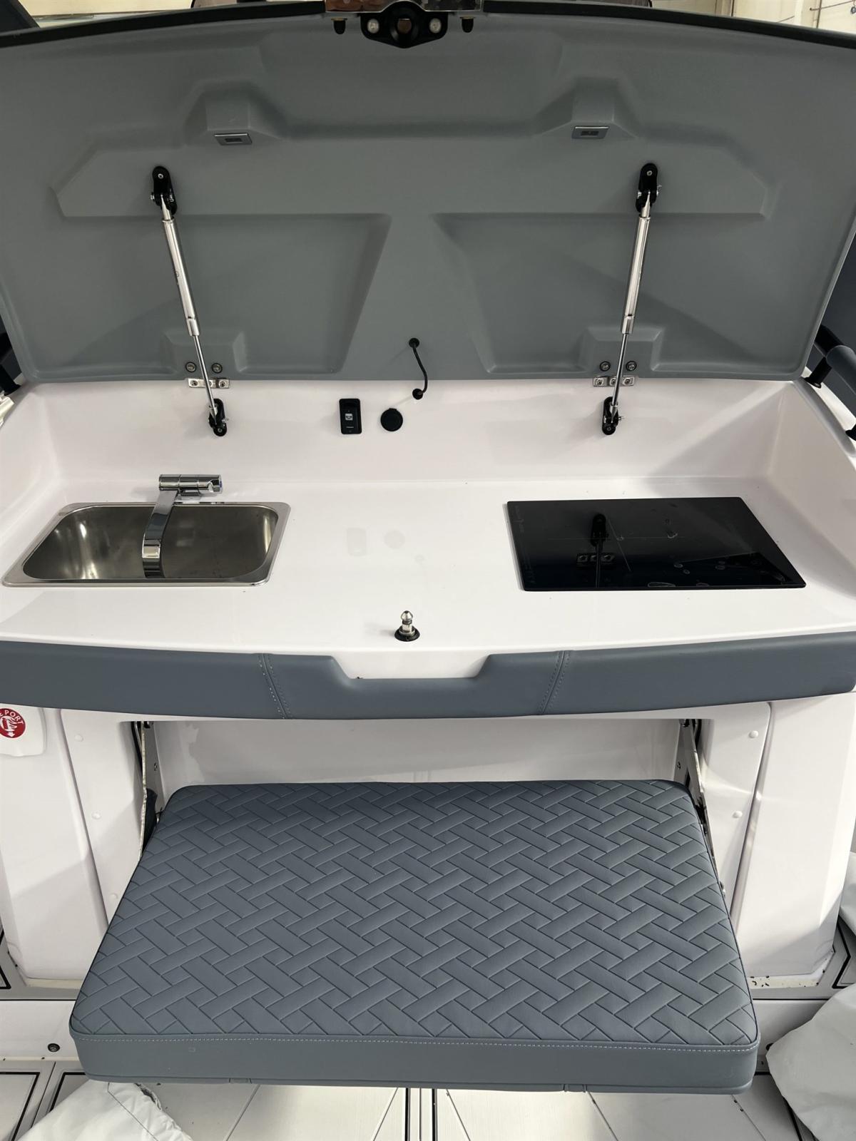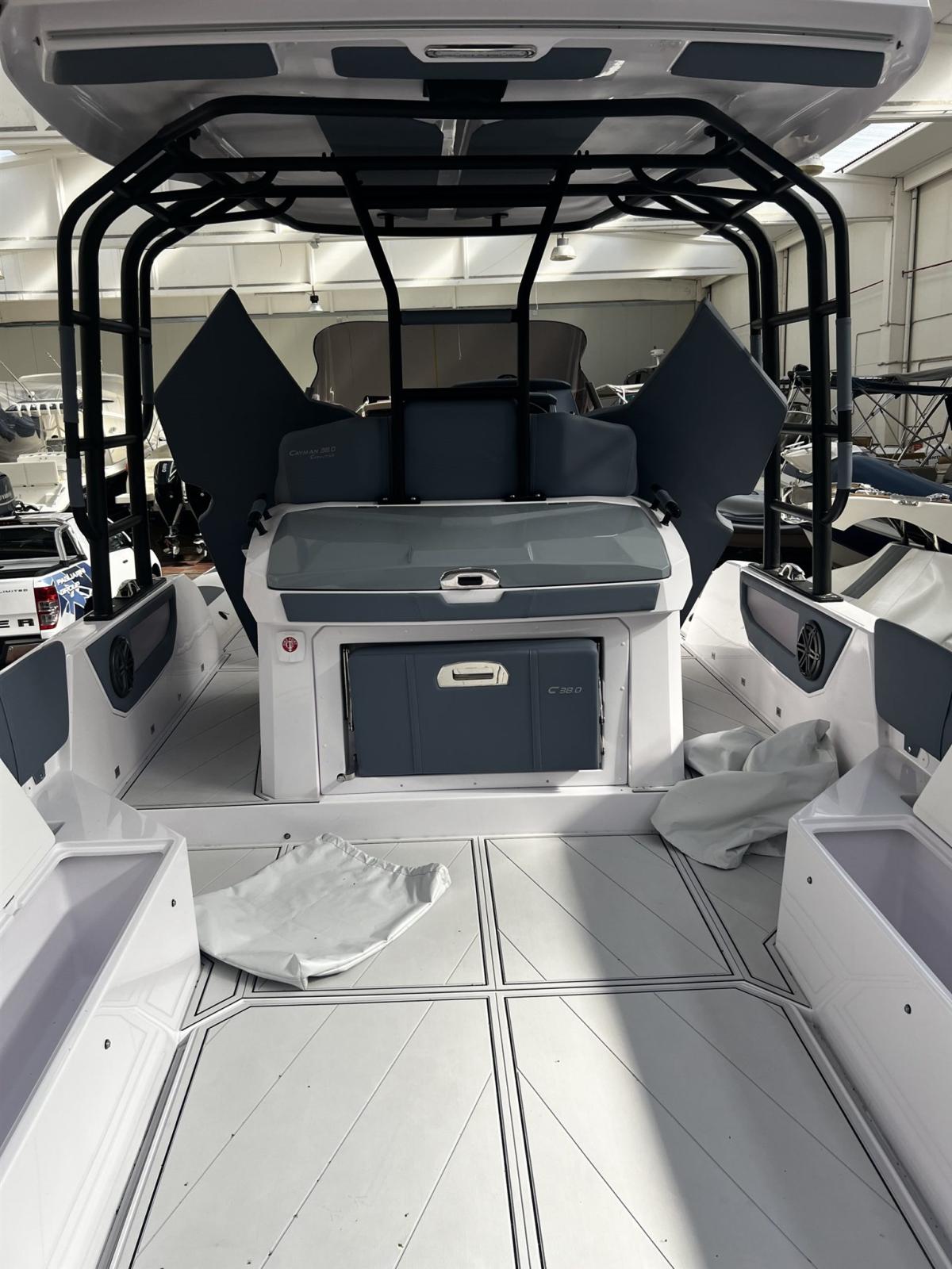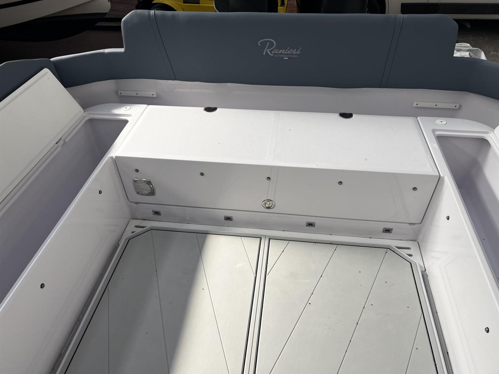 Ranieri Cayman 38.0 Executive nuovo demo, l’ottima abitabilità interna e le eccellenti prestazioni di navigazione. La versione “Executive” si distingue per un allestimento ricco che include spazi dedicati a relax e living, cabine confortevoli e un bagno. La navigazione è stabile e reattiva grazie alla carena particolarmente efficiente- Questa unità , in pronta consegna, è riccamente preallestita e motorizzata con una coppia di SUZUKI 350 Stealth Line . Sono già presenti a bordo i seguenti accessori opzionali: Aria condizionata 12 v., Elica di prua, Fly Top bianco vtr, Impianto per batteria addizionale, GPS/ECO/VHF, Parabrezza maggiorato, Frigo est., Kit Led est., Videocamera frontale, Doppia piastra induzione + inverter, Telo copri seduta e consolle, Tripla batteria.