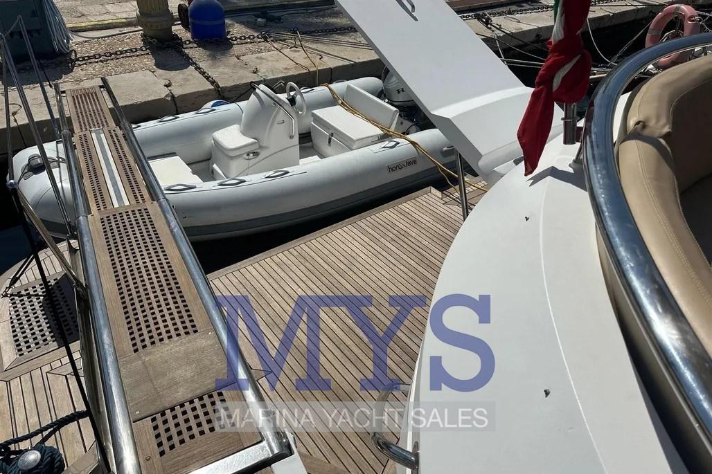 Allarme fumo/gas, Allarme motore, Allarme sentina, Autoclave, Autogonfiabile (2024), Batterie (2025), Camminamenti laterali in teak, Caricabatterie (2024), Cavo corrente di banchina, Corrimano, 2 Doccia esterna, Faro orientabile, Impianto antincendio, Lavaggio catena, Lavandino nel Pozzetto, Luci di cortesia, 2 Luci subacquee (Blu), Monitor batteria, Parabordi, Passerella, Piattaforma (Idraulica 600 Kg), Pompa di sentina automatica, Pompa di sentina manuale, Ponte in teak, Porta ingresso, Porta laterale (Elettrica), Pozzetto Teak, Presa 220V banchina, Presa acqua banchina, Raddrizzatore, Salpa Ancore Elettrico, Scaletta da bagno, Stabilizzatori (Idraulici Vetus), Tavolo pozzetto, Tromba, 2 Winch tonneggio di poppa, Winch tonneggio di prua.