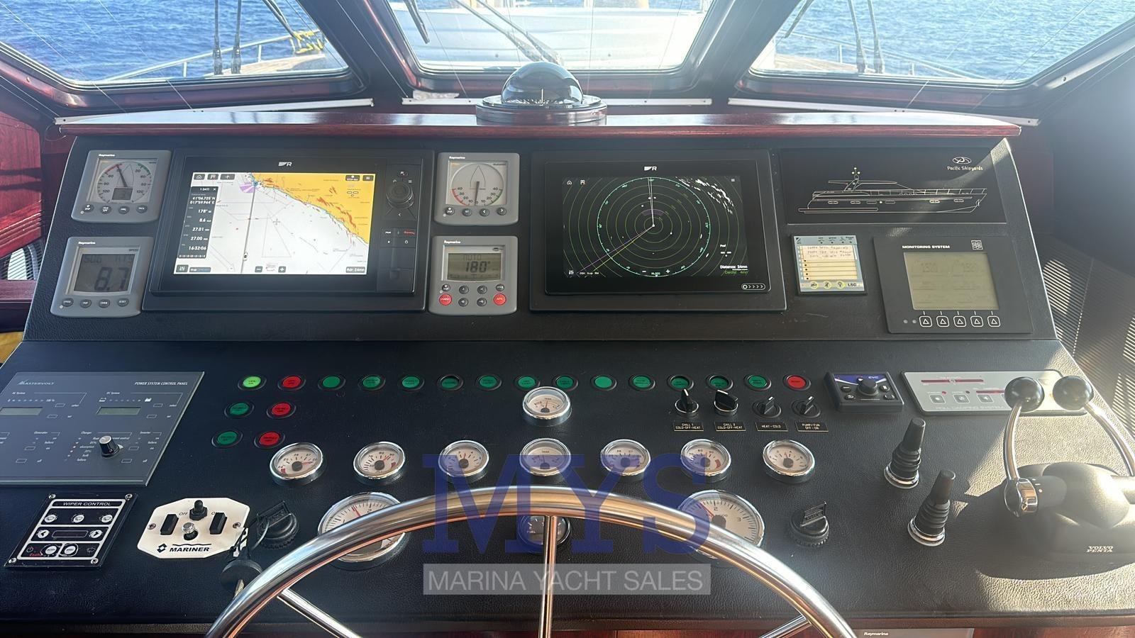 AIS (Da attivare), Angolo barra, Antenna radar (2024), Comando motori elettronico, Computer di bordo, Contametri catena, DSC vhf, Indicatore di virata, Mappe e guide, MeteoFax, Monitor dei consumi, Plotter con antenna GPS, Quadro comandi, 2 Radio VHF, Strumenti di misura per motori.
