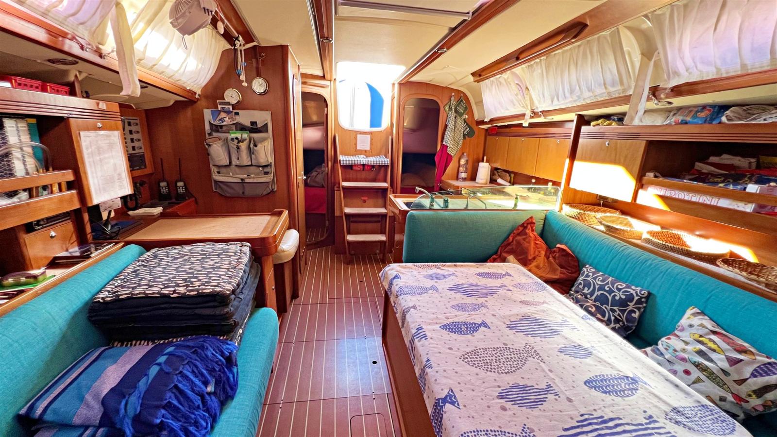 3 cabine, 2 bagni con wc manuali. Dinette convertibile. Strumentazione completa Raymarine. Pannelli solari. Generatore eolico. Dissalatore. Riscaldamento Webasto. Tender Arimar 2023 con motore Mercury 2,5 cv 4 tempi.