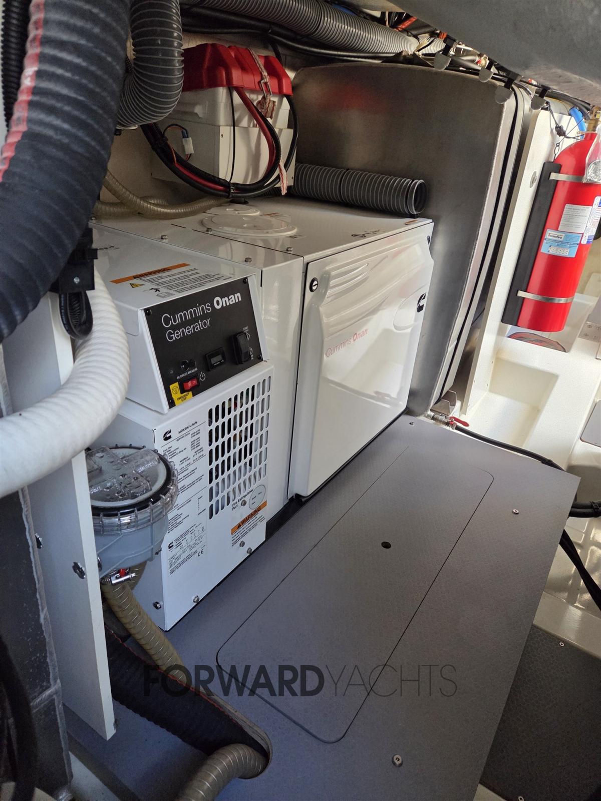 A bordo non manca nulla: aria condizionata tropicale, generatore, piattaforma da bagno idraulica e passerella, impianto audio Bose, elettronica Raymarine, e finiture in teak nel pozzetto.