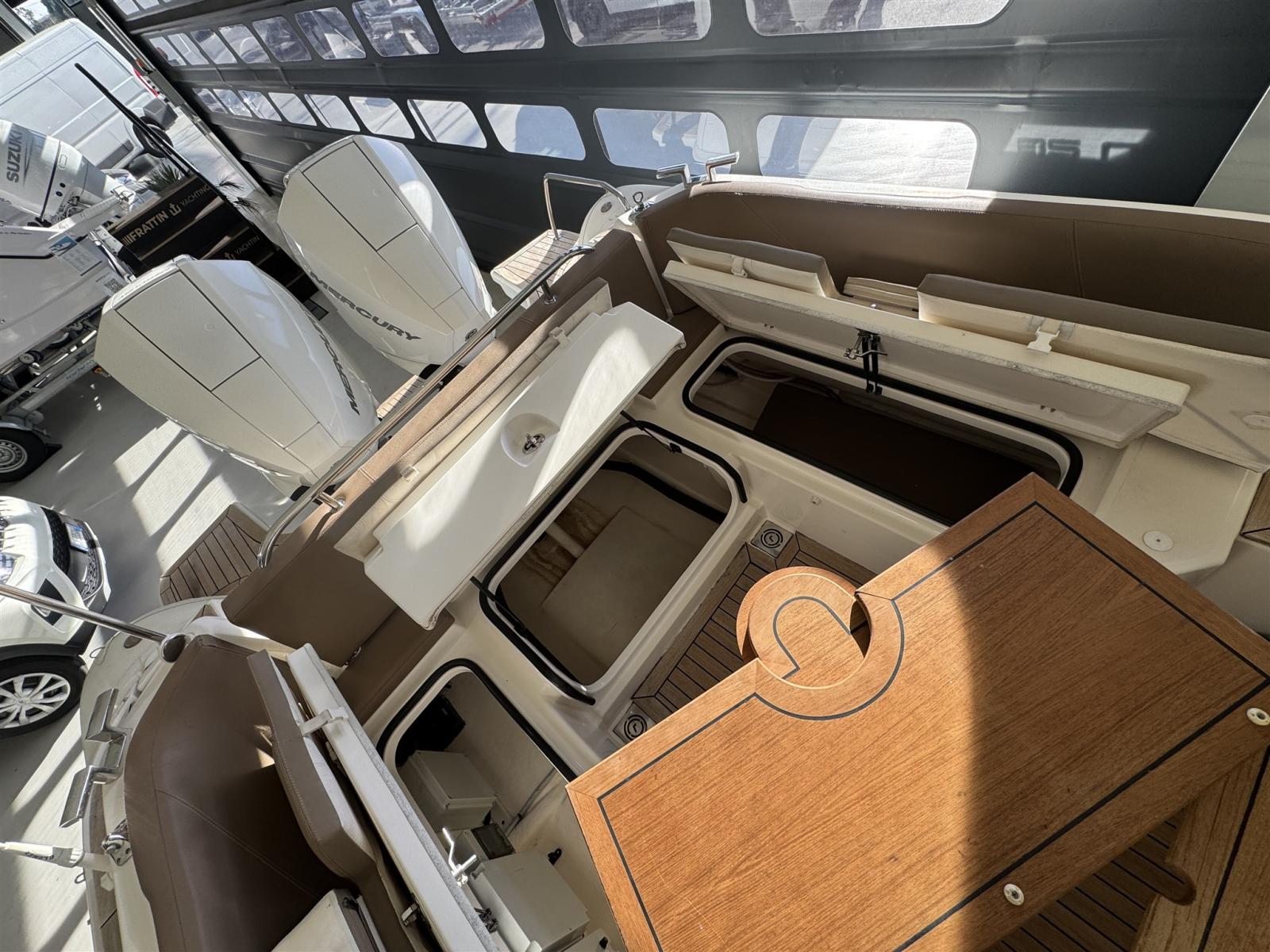 La doppia motorizzazione Mercury 225 CV garantisce prestazioni elevate, ottima maneggevolezza e consumi equilibrati risultando ideale sia per la navigazione giornaliera sia per uscite prolungate.