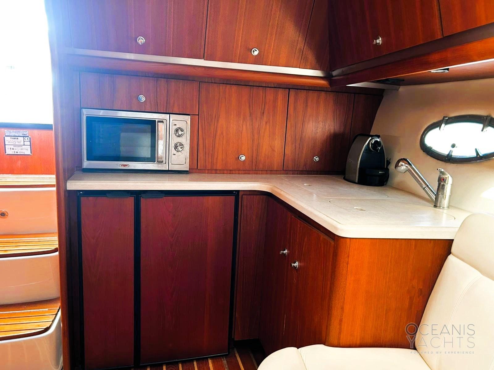 Allarme motore, Allarme sentina, Alternatore, Autoclave, Doccia esterna, Hard top, Lavandino nel Pozzetto, Luci di cortesia, Passerella, Piattaforma, Pompa di sentina automatica, Pompa di sentina manuale, Pompa Lavaggio Ponte, Ponte in teak, Porta ingresso, Pozzetto Teak, Presa 220V banchina, Salpa Ancore Elettrico, Scaletta da bagno, Tromba, Winch tonneggio di poppa.