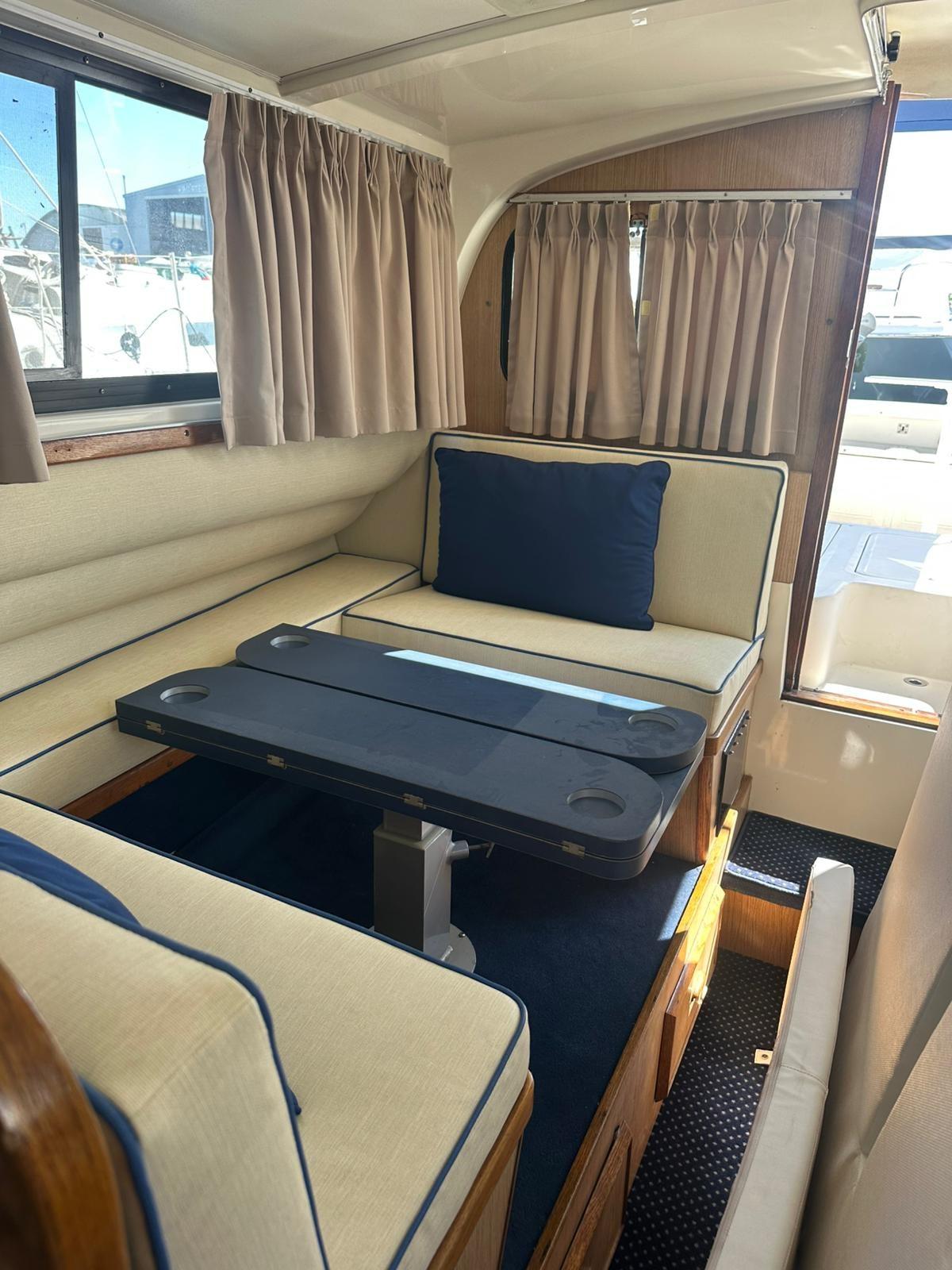 sostituzione turbine motori - sostituzione di tutte le tappezzerie esterne ed interne - verniciatura fasce esterne e serramenti (porte, finestre) - lucidatura completa scafo e sovrastruttura - istallazione panca in pozzetto con tavolo - revisione wc e impianto idraulico.