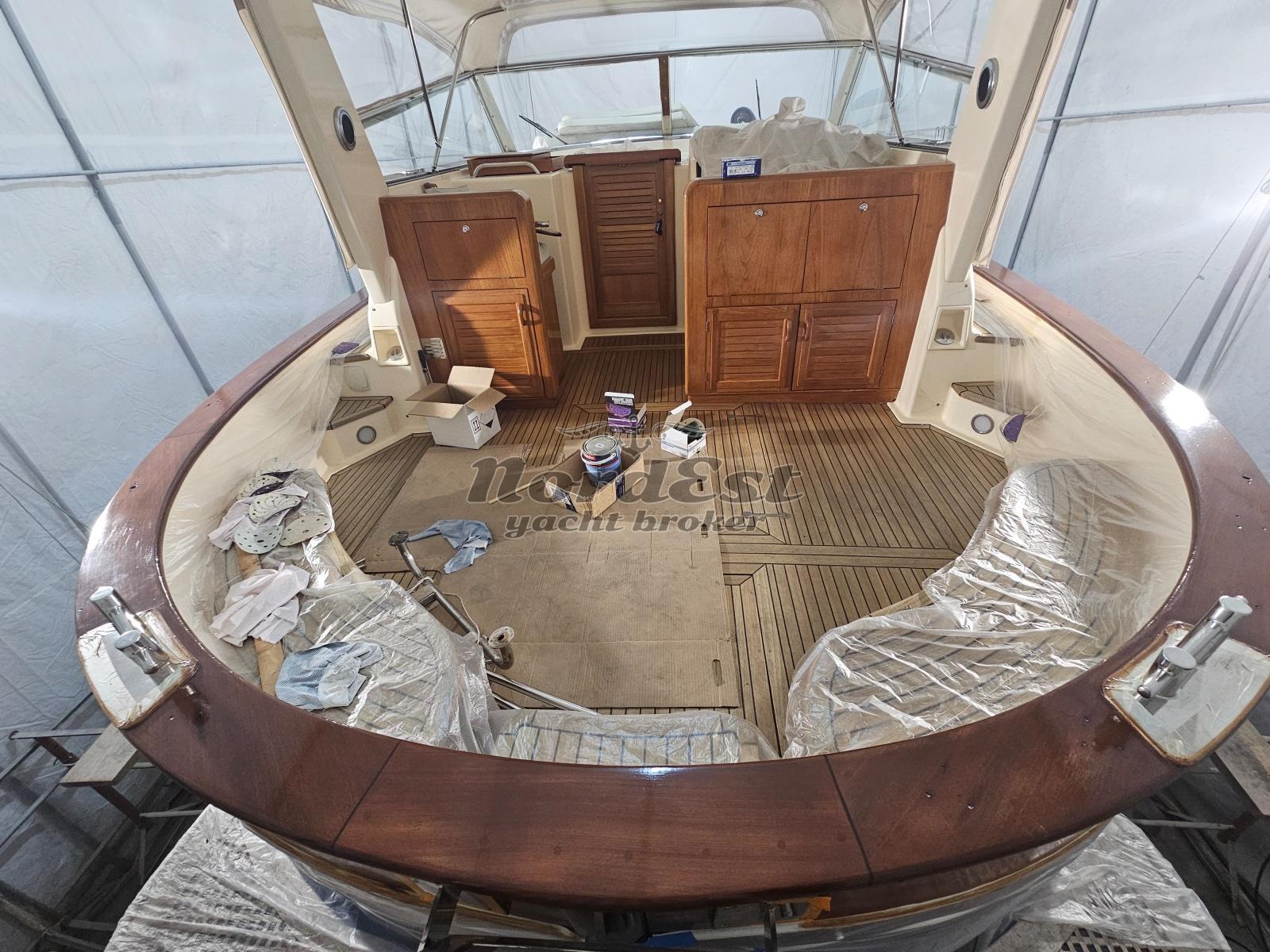 Verniciatura murate 2021, teak completo nuovo 2021, lavori documentati con book fotografico. Turbine nuove ed iniettori revisionati. Carena portata a zero. Cuscineria nuova 2022, tendalino con bimini anche a prua sul prendisole. Motori con solo 750 ore di moto. Imbarcazione in vendita e già pronta per la stagione utilizzata regolarmente dall'armatore.