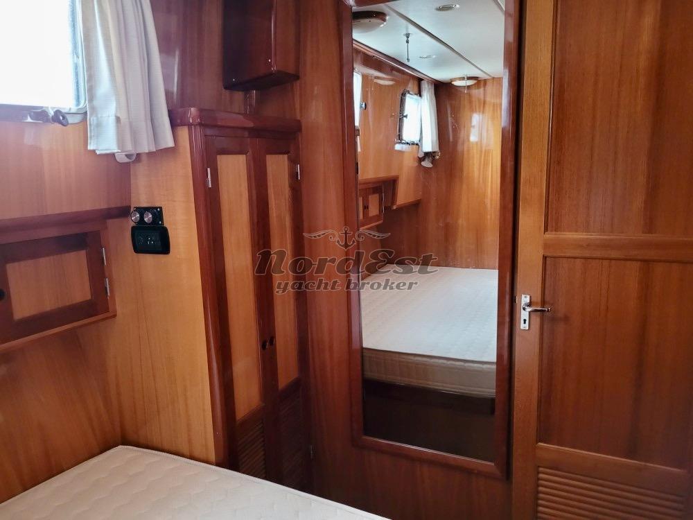 Trawler mantenuto in eccellenti condizioni da armatore molto preparato con tanti anni di esperienza. Solo alcuni degli accessori principali: Generatore Mase 11 kw - 4 pannelli fotovoltaici 120 A - 7 batterie 220A Victron -Aria condizionata 2 x 25.000 BTU CLIMMA - Inverter 2,5 KW 12/230V - Dissalatore 200 litri/ora - Elica di prua - Elica di poppa - Stabilizzatori idraulici Naiad (contro il rollio), Plancetta up-down idraulica in teak massello - Passerella Idraulica 4 metri 200 kg