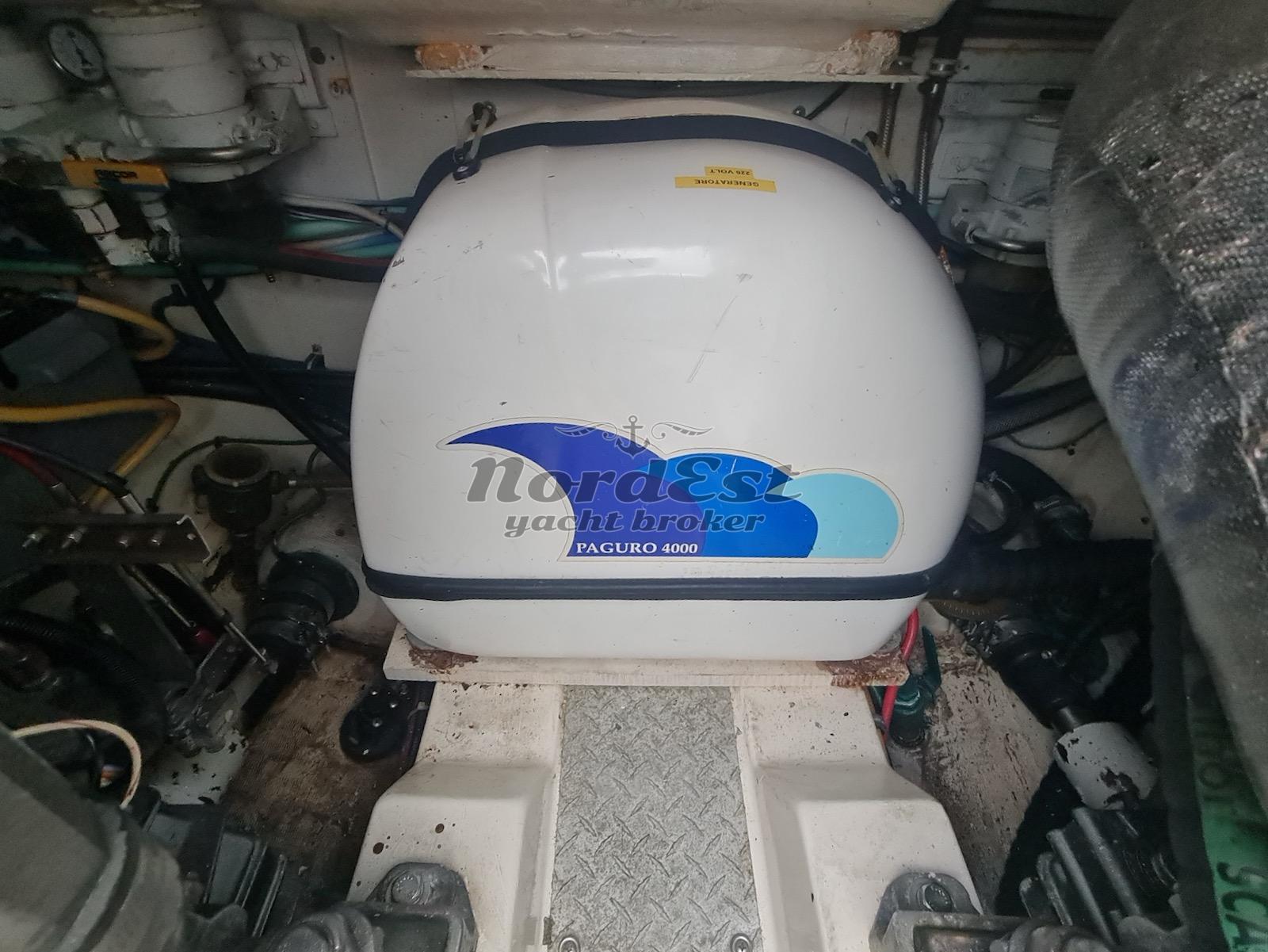 Generatore: Paguro 4 kw- Tensione di bordo: 12 / 220 V - Caricabatterie - Autoclave - Boiler - Impianto antincendio - Elica di rispetto - Doccia esterna - Flaps - Plancetta - Aria condizionata - Impianto acque nere - Impianto acqua a pressione - Frigorifero esterno - Forno - Frigorifero - Norvegese