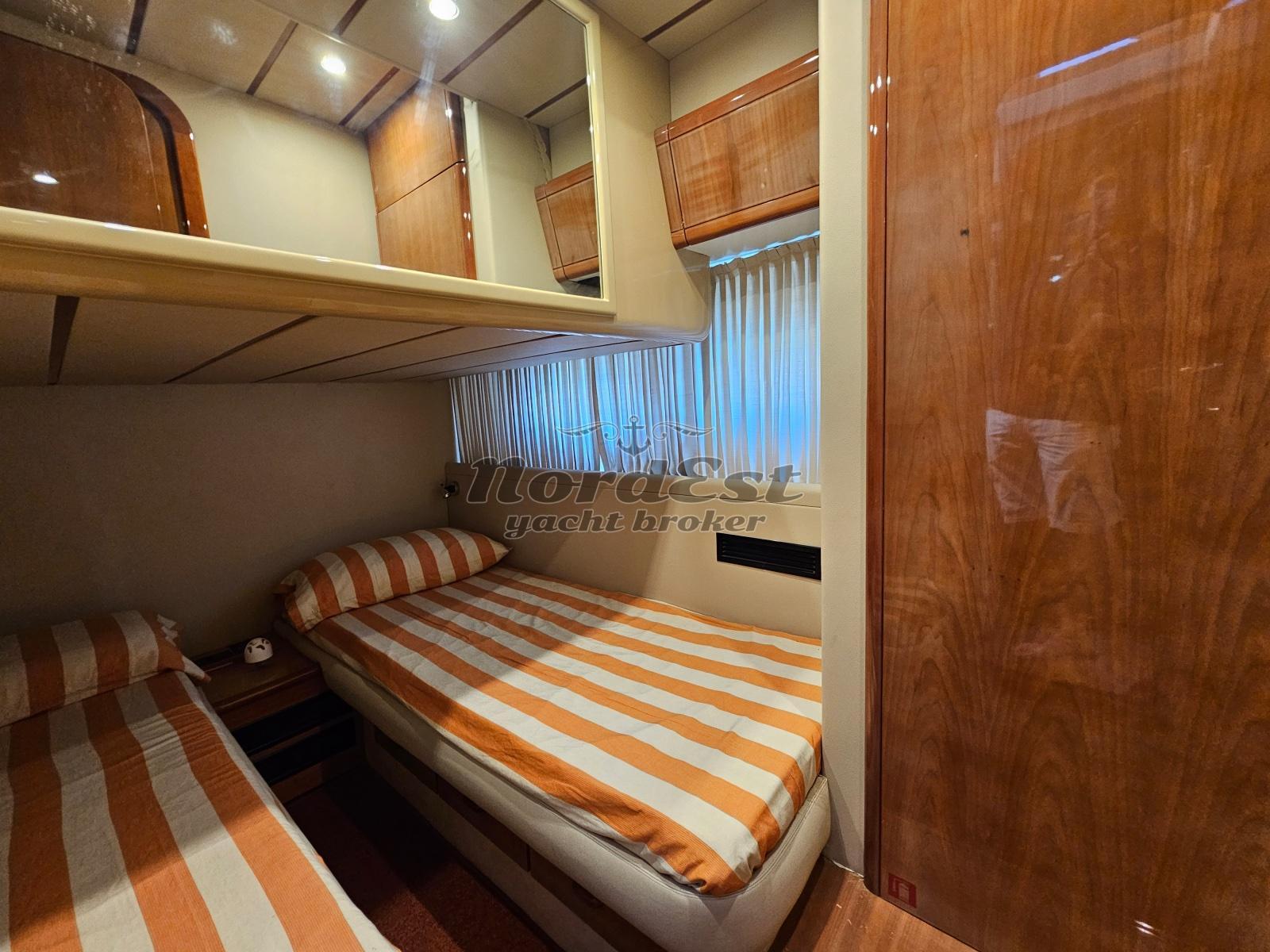 Nord Est Yacht Broker propone in vendita splendido Ferretti 46 Fly del 2000, imbarcazione di prestigio che combina l’eleganza del design italiano con affidabilità e comfort. Con i suoi 14,10 metri di lunghezza e motorizzazione Volvo Penta da 2 x 480 hp, offre ampi spazi interni e un flybridge vivibile, ideale per rilassarsi durante le crociere. Dispone di tre cabine, due bagni, cucina attrezzata, dinette luminosa e zona notte ben distribuita. L’imbarcazione è dotata di aria condizionata, passerella idraulica, generatore e strumentazione completa per la navigazione.