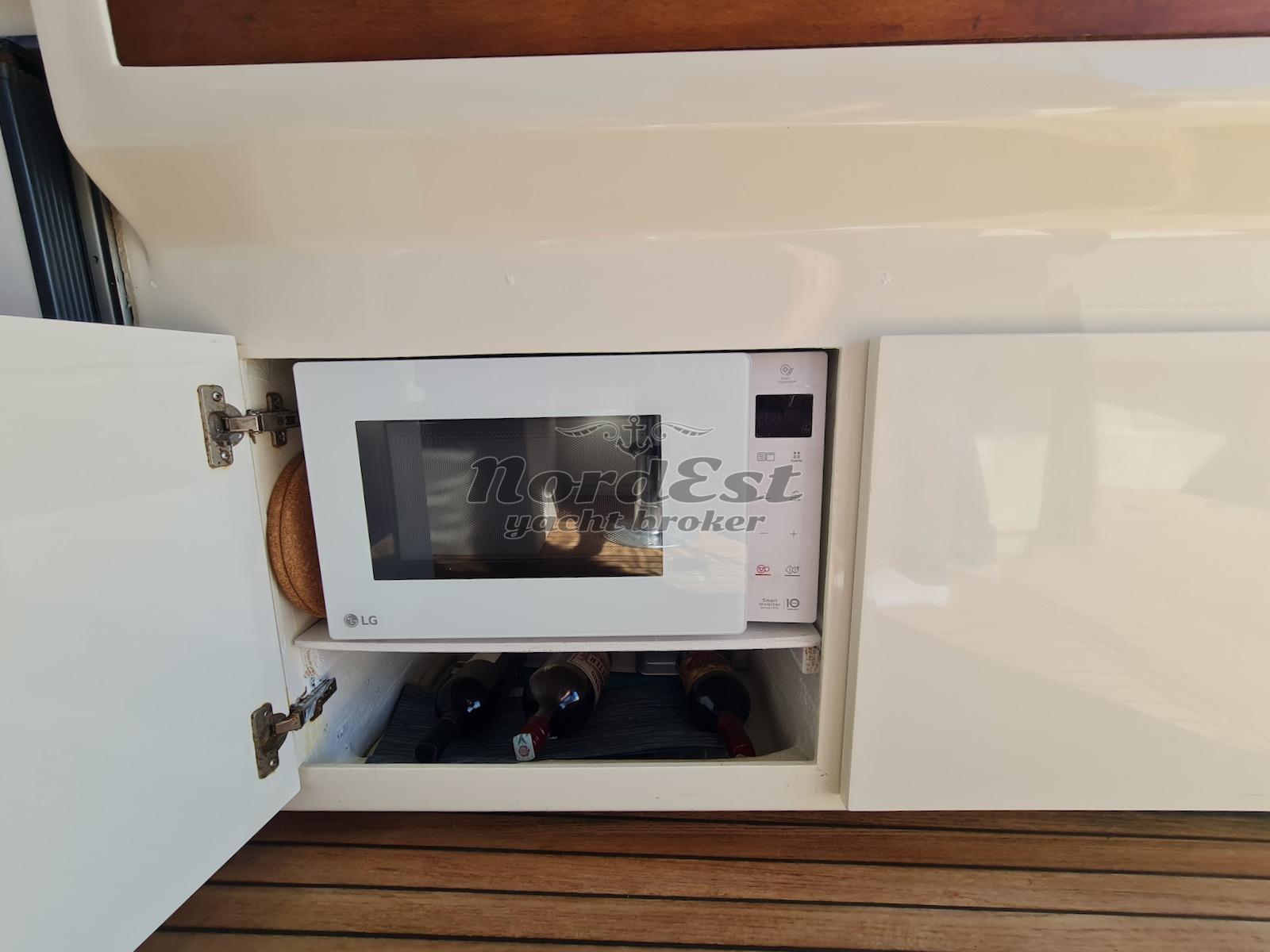 Generatore: Mase 3.5 kw- Tensione di bordo: 12 / 220 V - Caricabatterie - Autoclave - Boiler - Elica di prua - Doccia esterna - Flaps - Luci di cortesia - Plancetta: in teak - Aria condizionata - Zattera - Frigorifero esterno - Forno: microonde - Frigorifero - Piano cottura: 2 fuochi induzione - Cuscineria prendisole - Coprifinestrature esterne - Norvegese