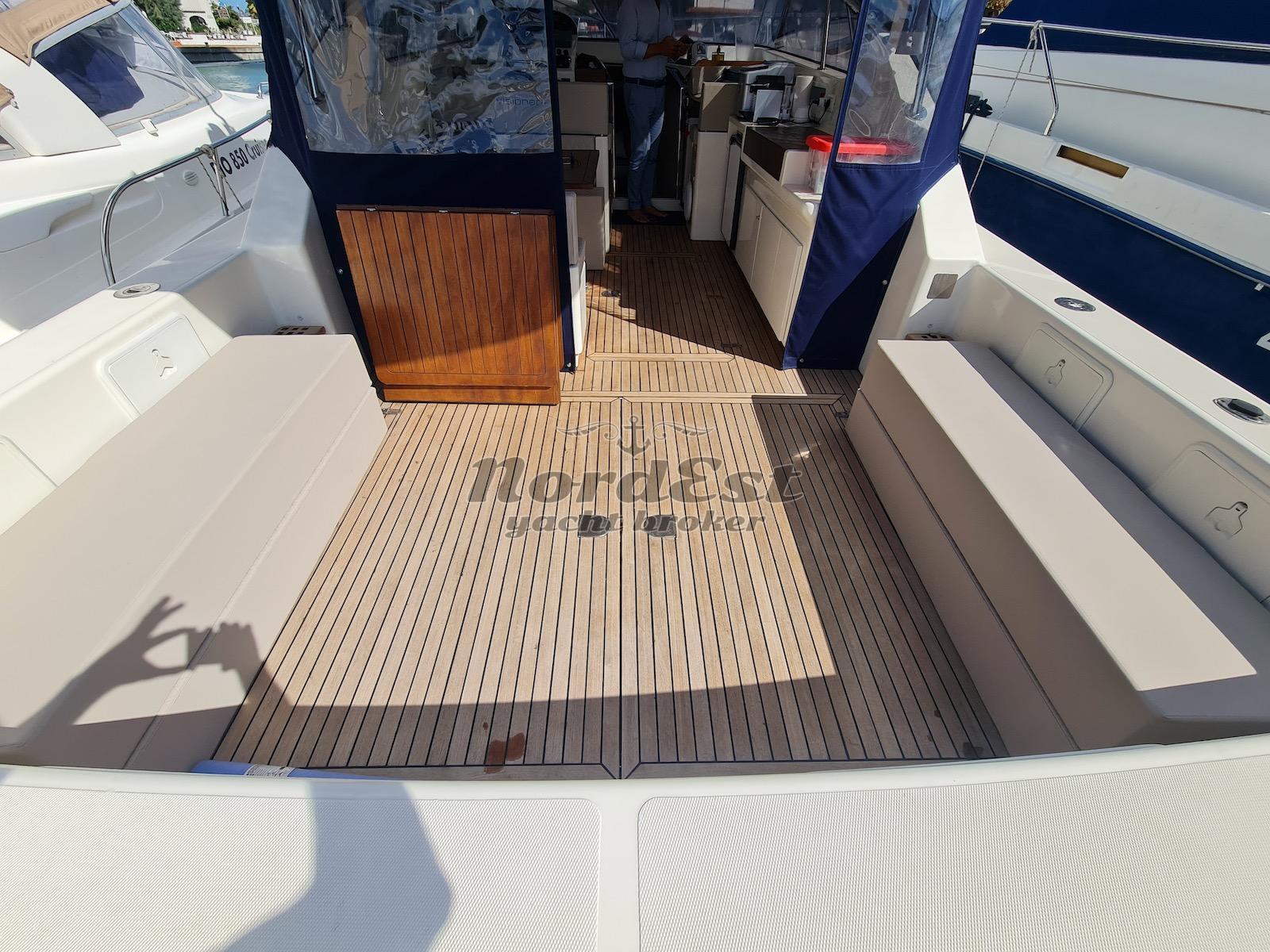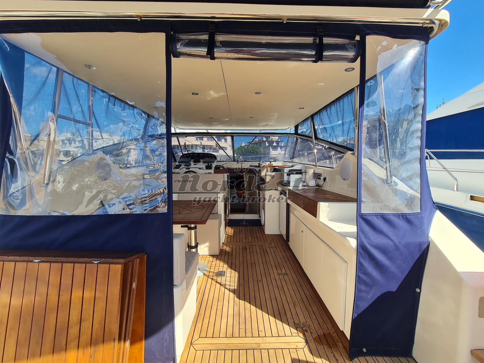 Tendalini nuovi, cuscineria prua e poppa nuova, dinette esterna nuova, cielo dinette esterna nuovo con luci a led accensione a sfioro, radio Fusion con subwoofer, doppio frigorifero, tv in dinette, ambienti climatizzati interni ed esterni. Teak plancetta e pozzetto nuovo.