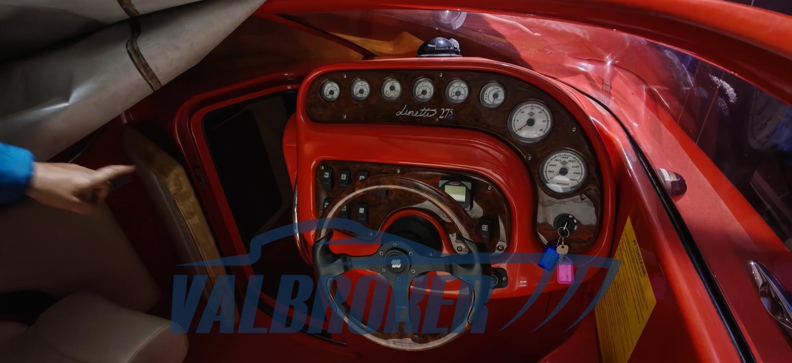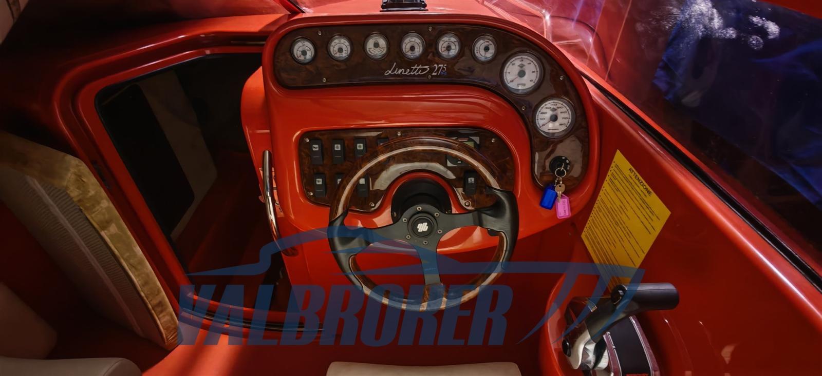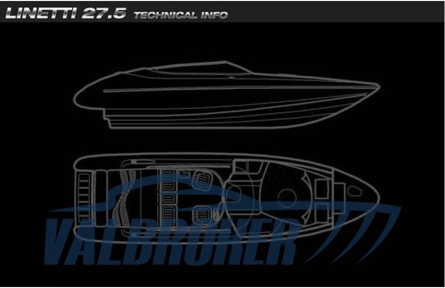 Lo stile del Linetti è inconfondibile: forma dinamica e allungata dello scafo. Può raggiungere alte velocità pur dando una sensazione di estrema solidità. Cabina a prua con bagno. Motore 1x 420 Mercruiser 496 MAG HO.