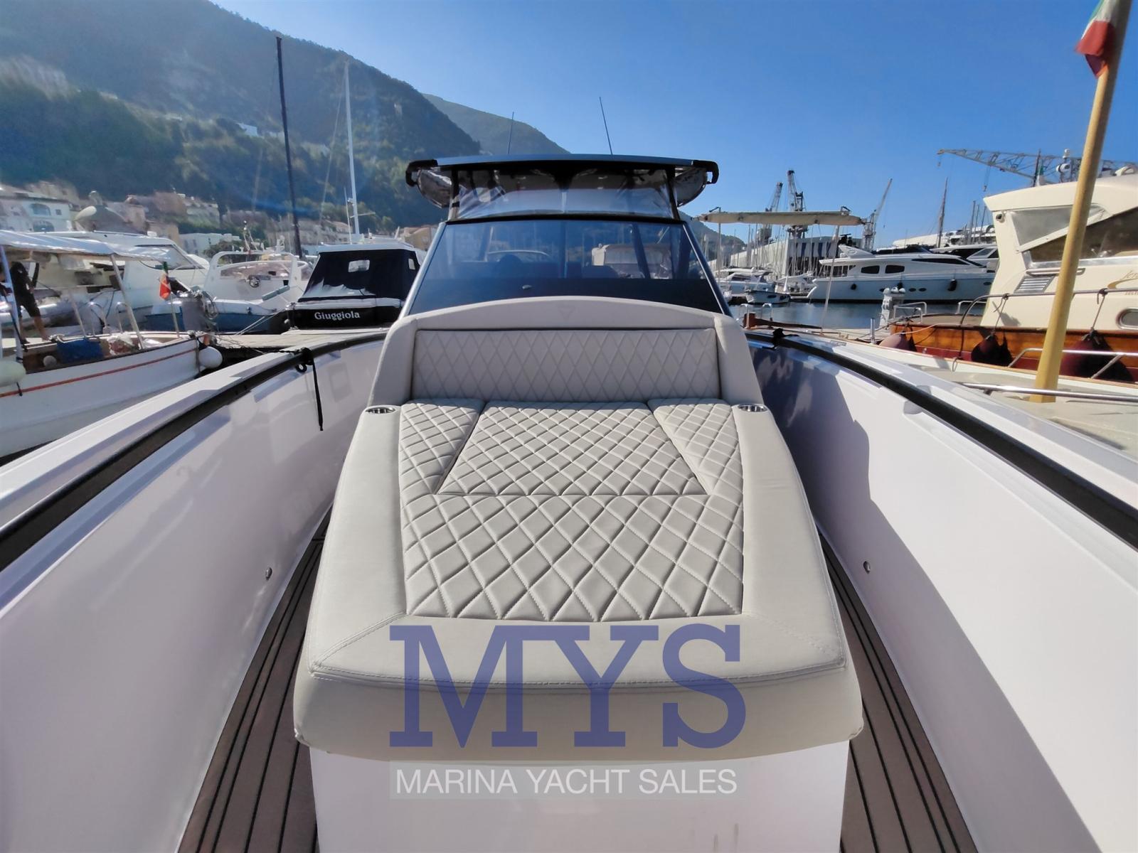 Allarme motore, Allarme sentina, Apertura Vano Motore Elettrica, Autoclave, Bitte Abbattibili, Camminamenti laterali in teak, Doccia esterna, Flap idraulici, Impianto antincendio, Lavandino nel Pozzetto, Luci di cortesia, Porta ingresso, Pozzetto Teak, Presa 220V banchina, Salpa Ancore Elettrico, Tavolo pozzetto, Tavolo Salone Abbattibile (esterno), Tientibene con cancelletti, T-Top.