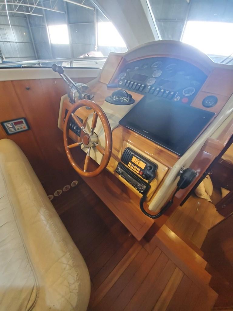 Angolo barra, Antenna radar (Garmin), Ecoscandaglio (Garmin Fisch Finder), Plotter con antenna GPS (GPSMAP Garmin 1222xsv Touch - Multifunzione: Radar - Eco Fish Finder), Radio VHF (Icom IC-M411).