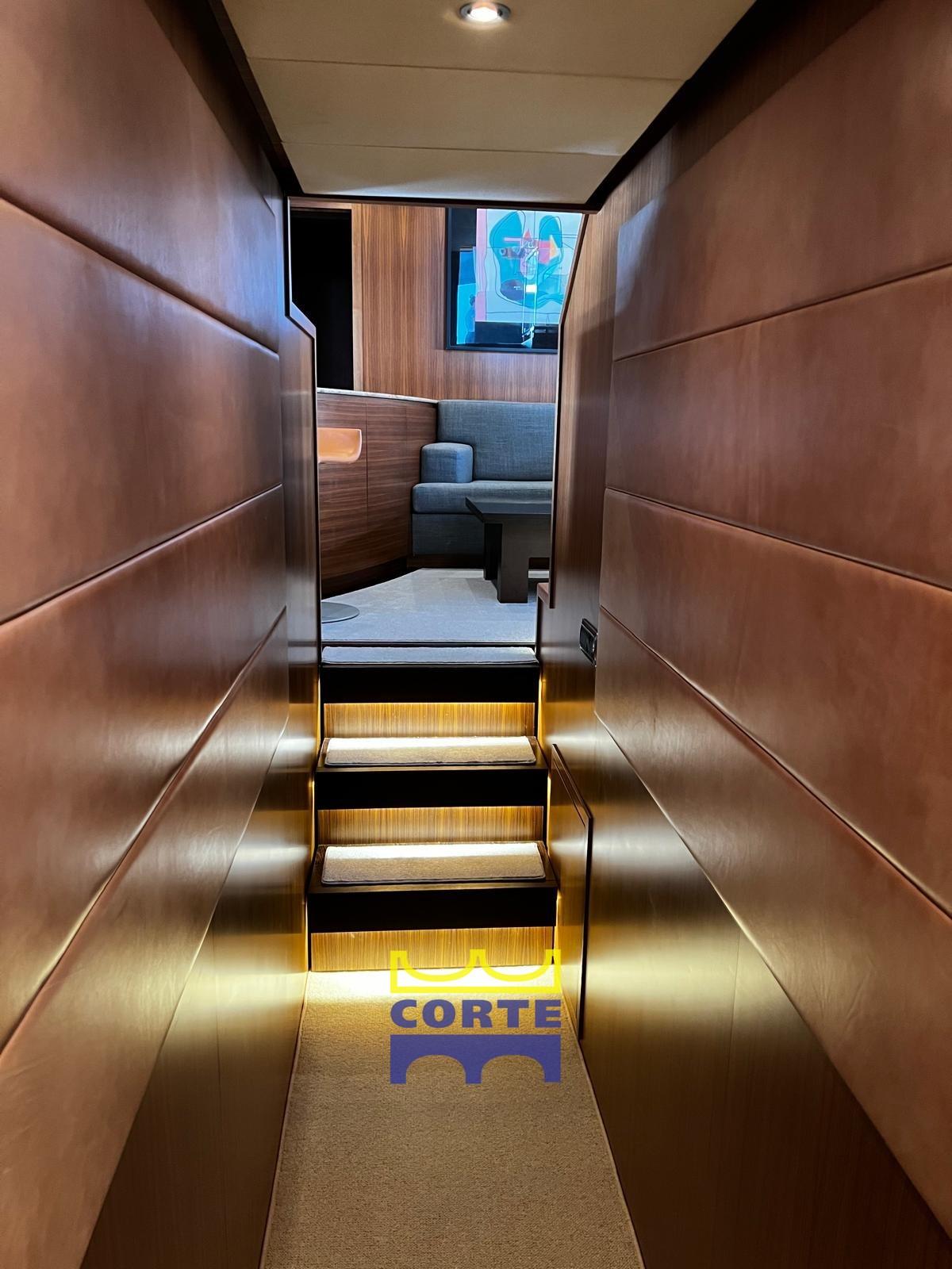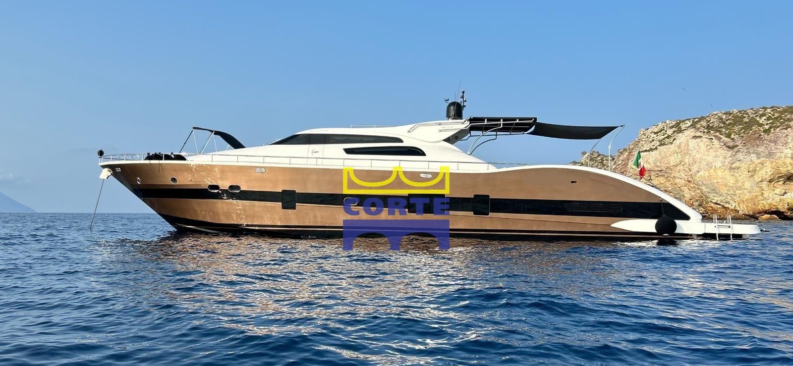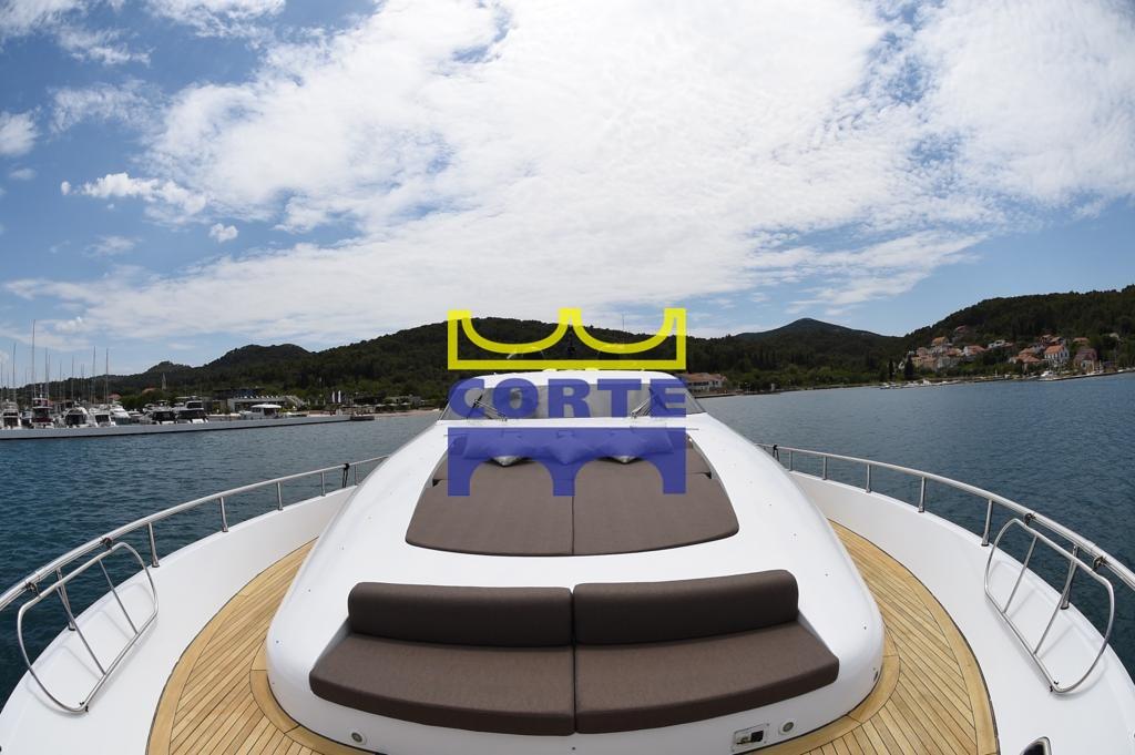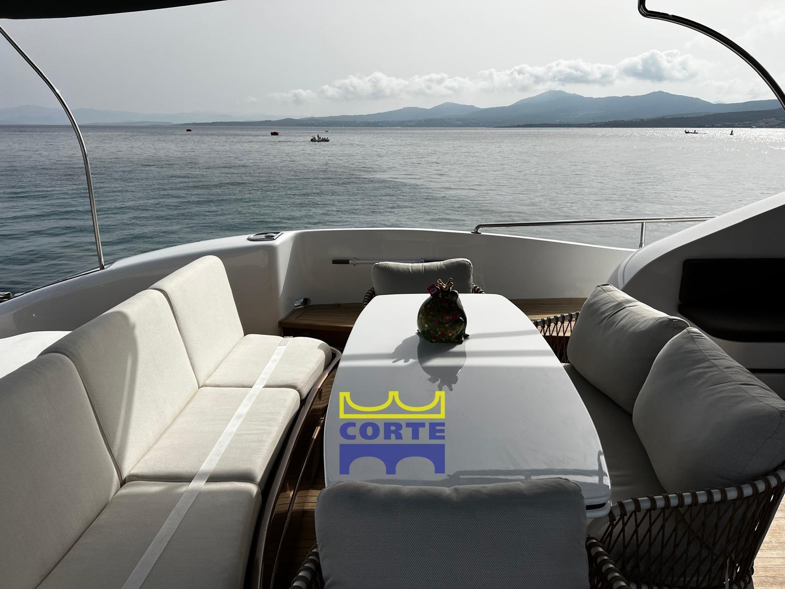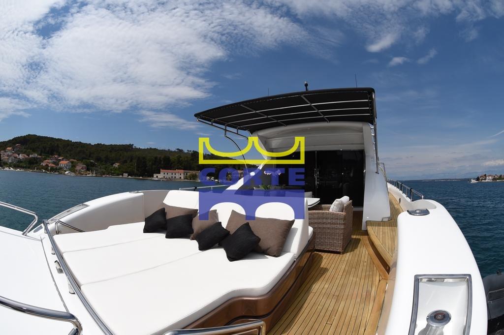Allarme fumo/gas, Allarme motore, Allarme sentina, Autoclave, 26 Batterie, Camminamenti laterali in teak, Doccia esterna, Garage per tender, Luci di cortesia, Passerella, Piattaforma (di poppa), Pompa di sentina automatica, Pompa di sentina manuale, Ponte in teak, Pozzetto Teak, Presa 220V banchina, Presa acqua banchina, Salpa Ancore Elettrico, Tavolo pozzetto.