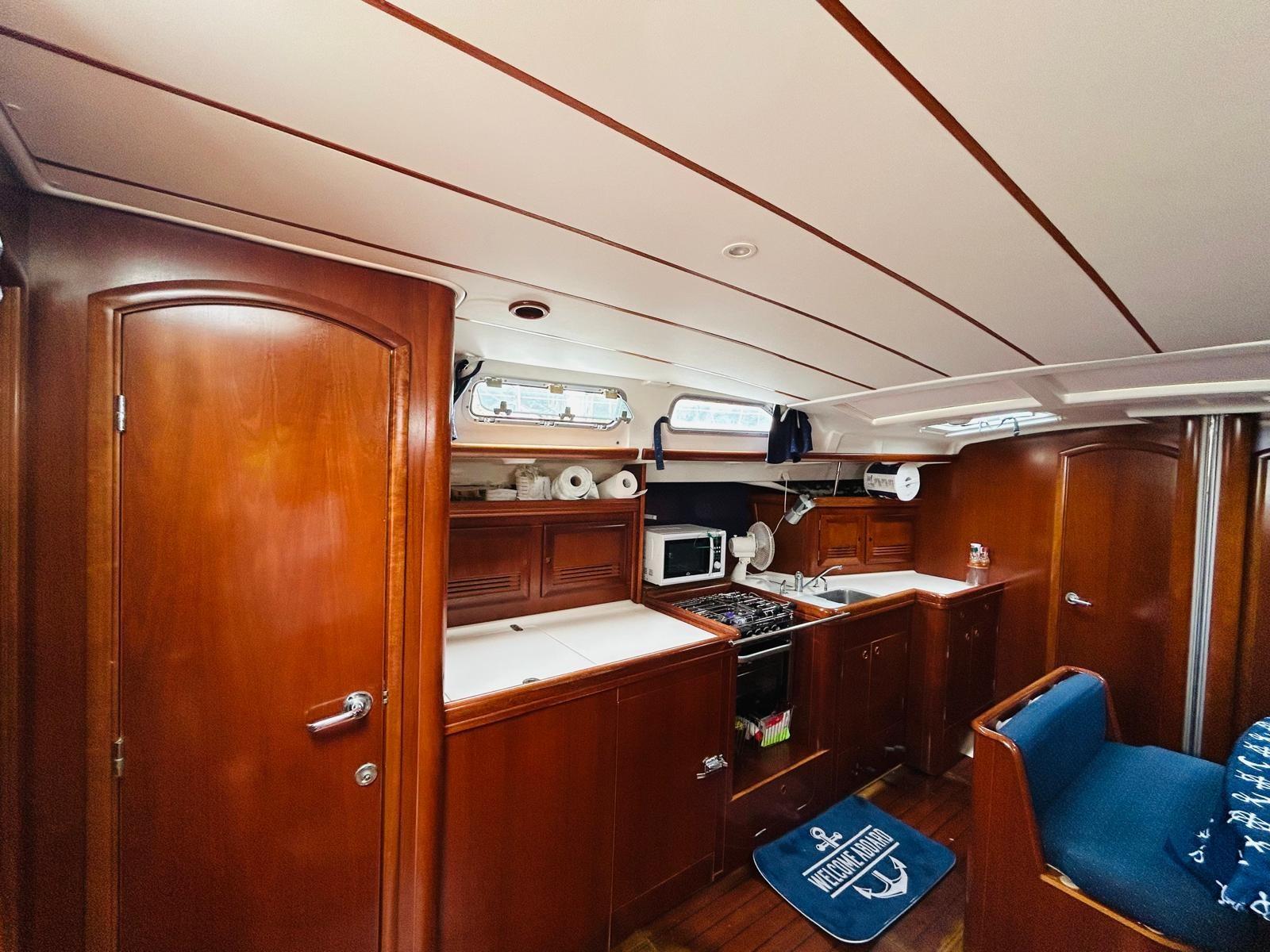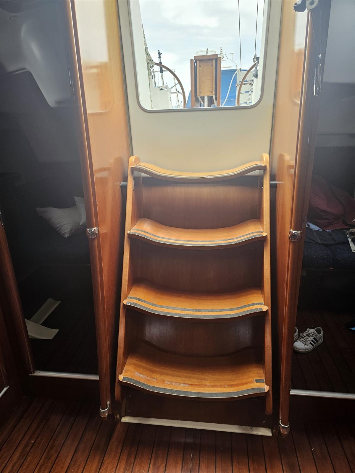 Interni mogano rosso, tender Zodiac 3 mt ancora imballato + Yamaha 5cv mai usato, Team Music anno 2025, elettronica rifatta interamente ray marine anno 2016, ultimo carenaggio sett 2024, boiler, doccia esterna, Copri ruote timoni in cuoio rifatti nel 2020