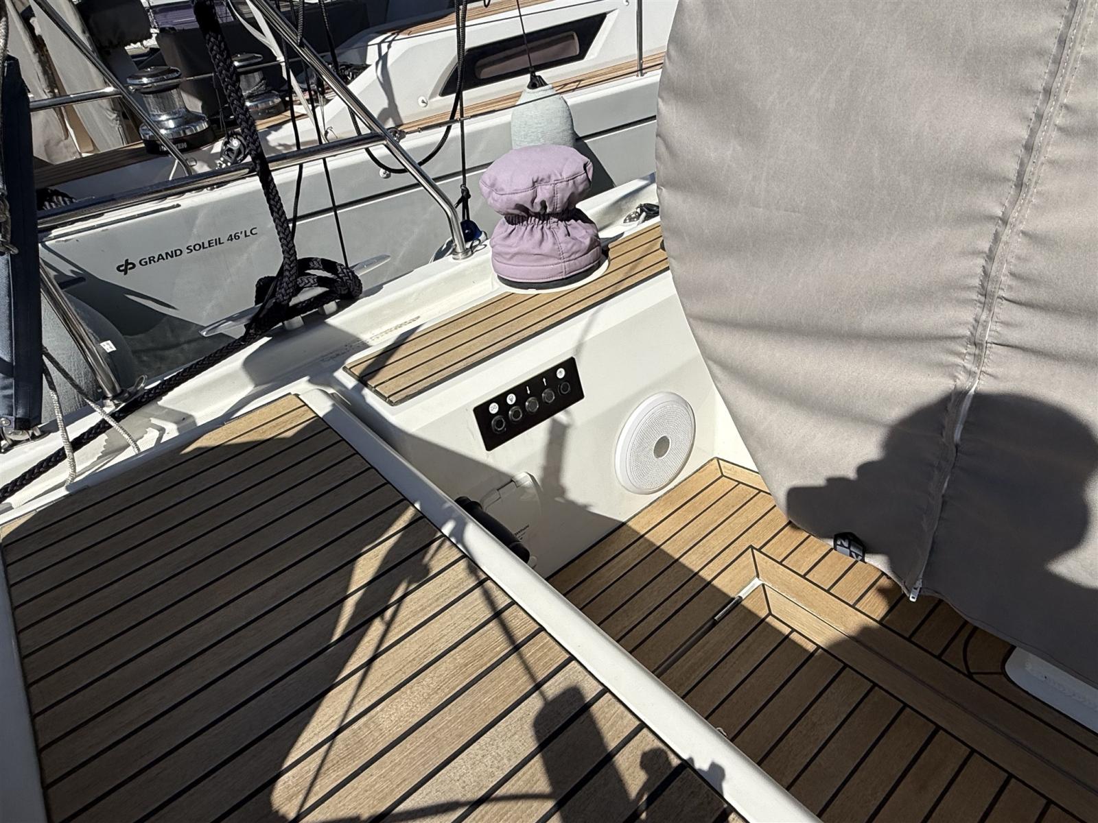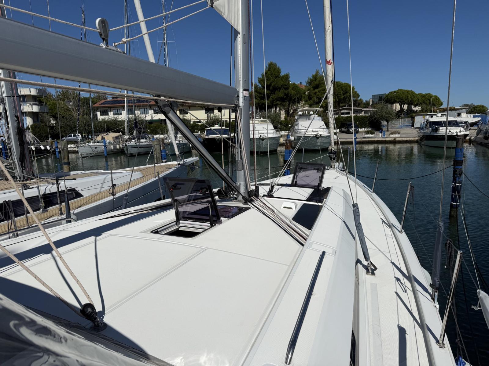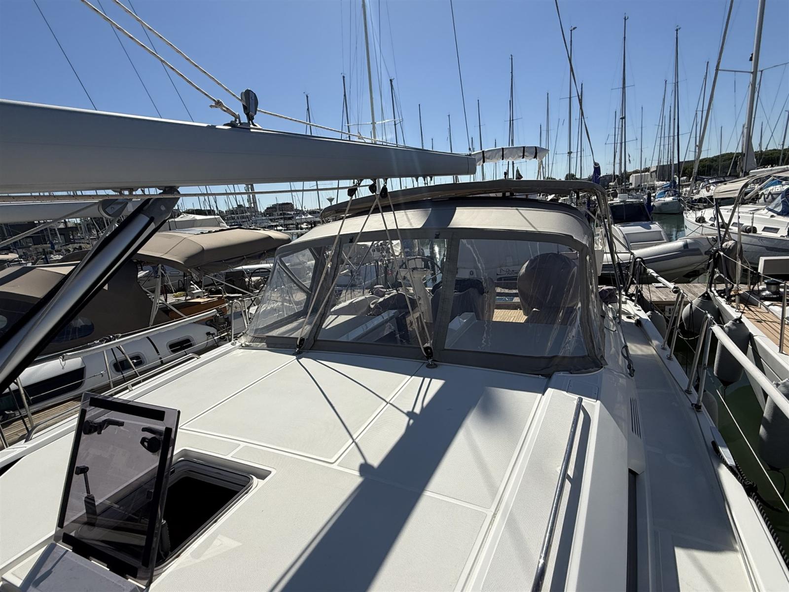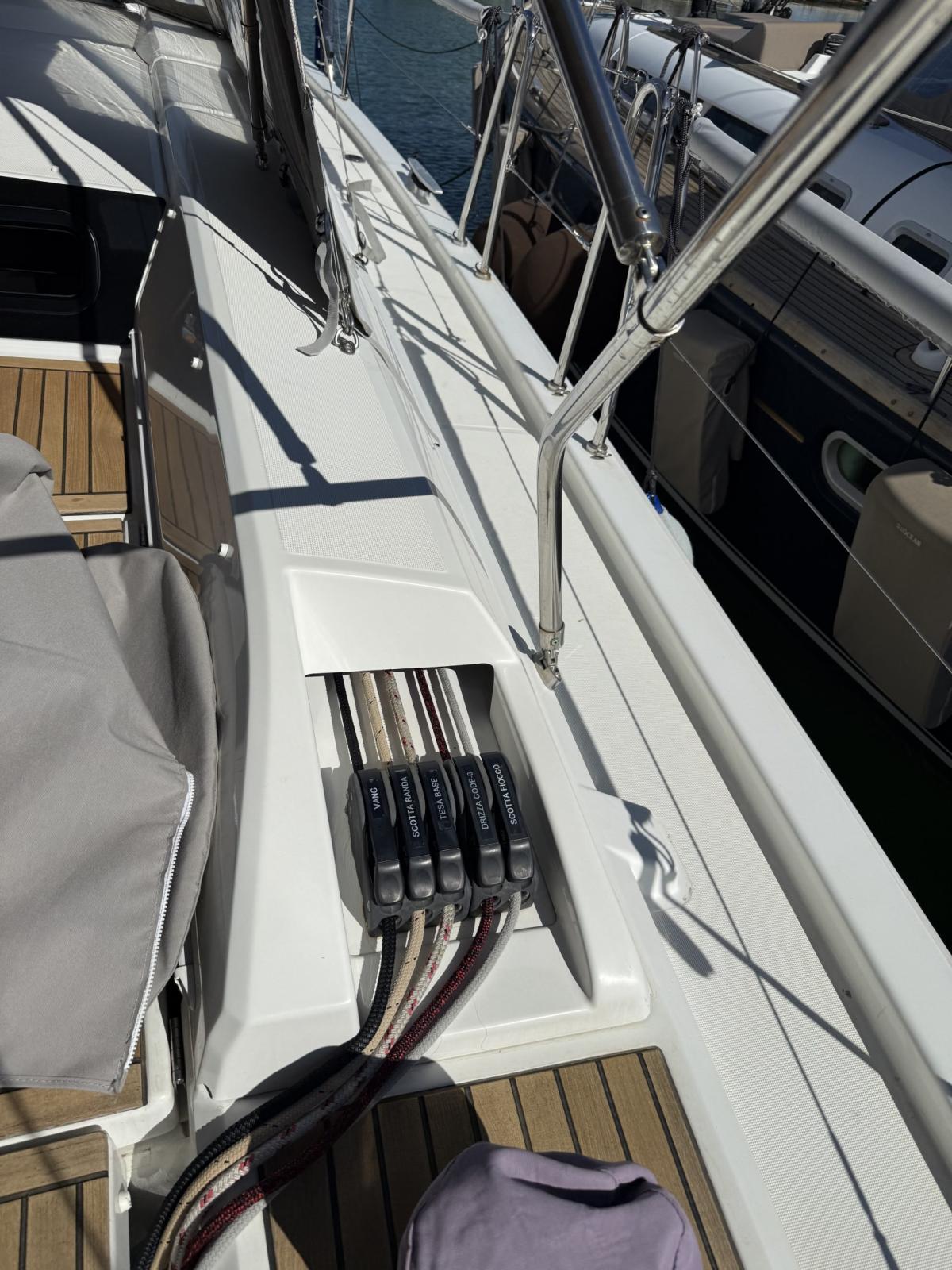 Allarme motore, Allarme sentina, Autoclave, Cavo corrente di banchina, Doccia esterna, Doppia timoneria, Luci di cortesia, Monitor batteria, Pannelli Solari, Parabordi, Piattaforma (elettrica con radiocomando), Pompa di sentina automatica, Pompa di sentina manuale, Pozzetto Teak, Presa 220V banchina, Presa acqua banchina, Salpa Ancore Elettrico, Sartiame spiroidale, Scaletta da bagno, Supporto motore fuoribordo, Tavolo pozzetto, 2 Winch Elettrico, Windex.
