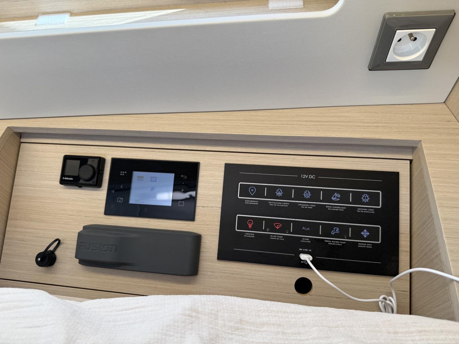 Acqua Calda, Boiler, Clima reversibile, Impianto acque nere, Inverter (2000w), Prese interne 12v, Prese interne 220v, Riscaldamento (Webasto), Serbatoio Acque Nere, Telecamera (realtà aumentata), 2 WC marino elettrico.