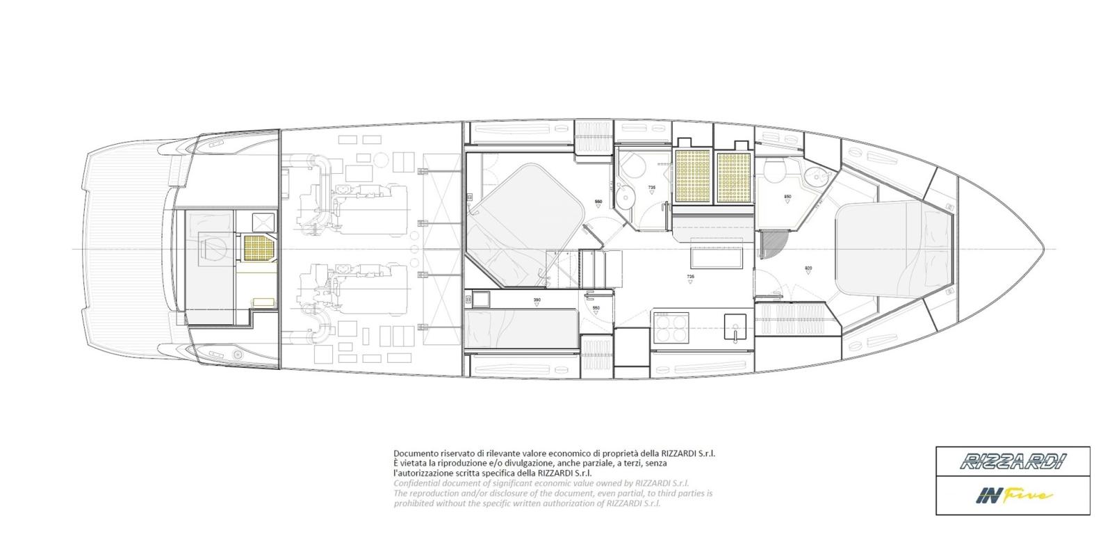Allarme motore, Allarme sentina, Alternatore, Apertura Vano Motore Elettrica, Autoclave, Camminamenti laterali in teak, Colorazione speciale, Doccia esterna, Faro orientabile, Flap idraulici, Garage per tender, Hard top, Impianto antincendio, Indicatori Flaps, Lavaggio catena, Lavandino nel Pozzetto, Luci di cortesia, Luci subacquee, Monitor batteria, Parabordi, Passerella, Piattaforma, Pompa di sentina automatica, Pompa di sentina manuale, Pompa Lavaggio Ponte, Pozzetto Teak, Presa 220V banchina, Presa acqua banchina, Rollbar, Salpa Ancore Elettrico, Scaletta da bagno, Sistema Depurazione acque nere, Tavolo pozzetto, Tavolo Salone Abbattibile, Tromba, Winch, Winch tonneggio di poppa, Winch tonneggio di prua.