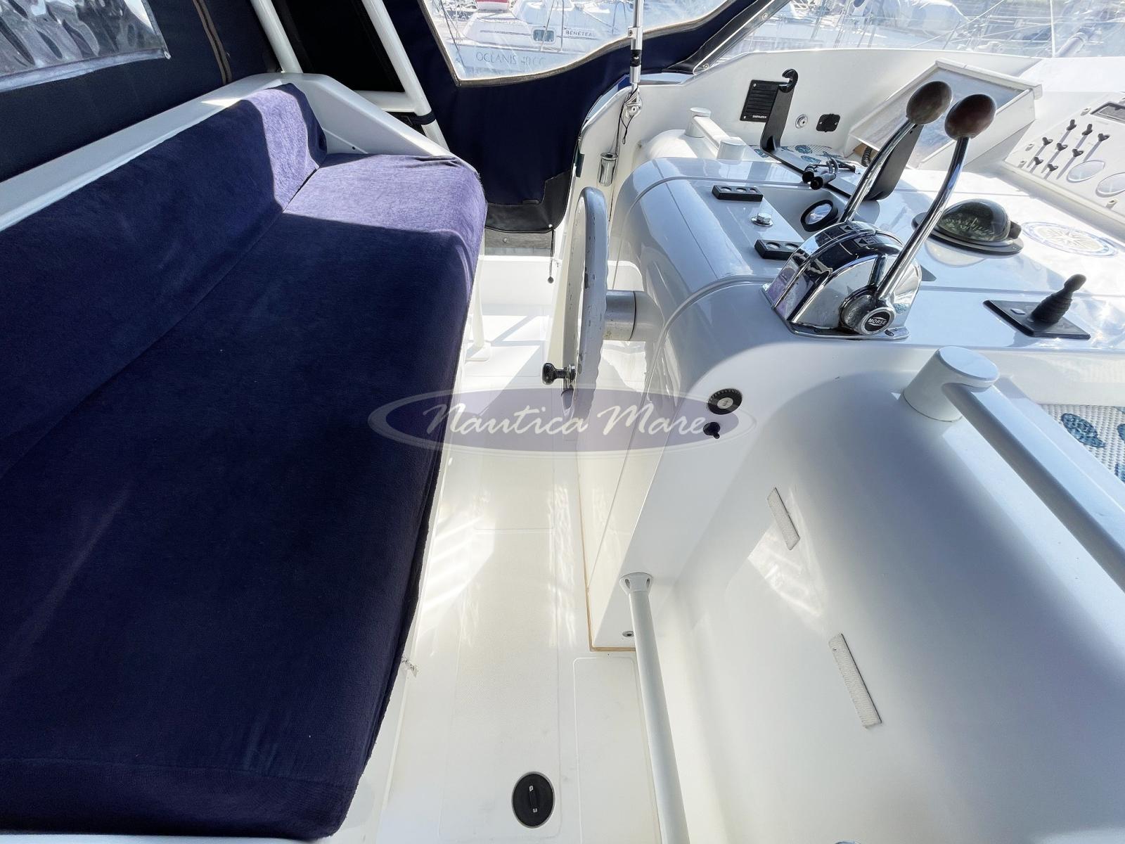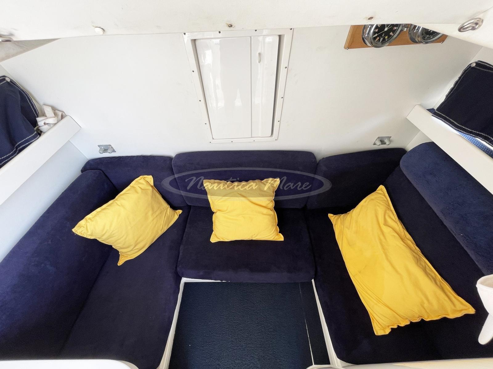 Il grandissimo prendisole a prua, con tavolo e tendalino parasole a scomparsa è certamente la zona più conviviale dell'imbarcazione. Anche la consolle di guida è ampia e generosa: sulla poltrona di comando trovano sistemazione 3 persone ed il parabrezza, alto ed avvolgente, insieme al roll-bar ed al tendalino garantiscono protezione durante la navigazione. Gli ospiti a bordo sono protetti da un alto e sicuro pulpito-tientibene perimetrale che si apre verso poppa per l'accesso alla plancetta bagno e verso prua per l'accesso al verricello. Ideale anche per utilizzo charter.