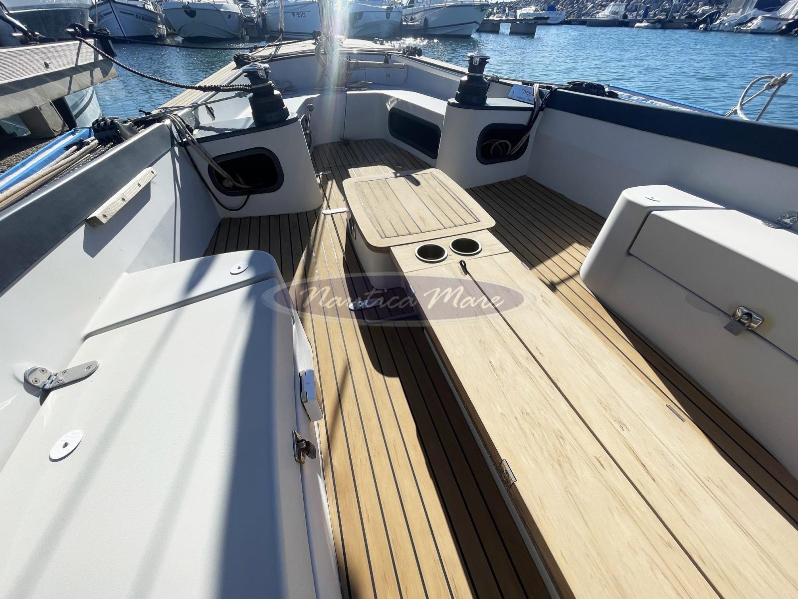 Tutto il piacere della navigazione senza difficoltà di manutenzione anche grazie alla scelta del teak sintetico. Barca versatile, progettata per adattarsi a tutti i velisti, si può utilizzare da soli oppure in coppia, con la famigllia o con gli amici. Le attrezzature essenziali sono riportate al timoniere, a poppa, per facilitare la conduzione. Dispone di una cabina con ampio stivaggio e due cuccette confortevoli per trascorrere la notte a bordo. La deriva mobile offre stabilità e praticità, nei bassi fondali o con le maree ed il bompresso retrattile offre un'esperienza di navigazione fluida, senza ostacoli. Tutte le vele sono avvolgibili ed anche il tavolo retrattile offre un comfort senza pari. Imbarcazione dalle prestazioni ineguagliabili anche con pochissimo vento, facile da manovrare e trasportare, veloce da armare.