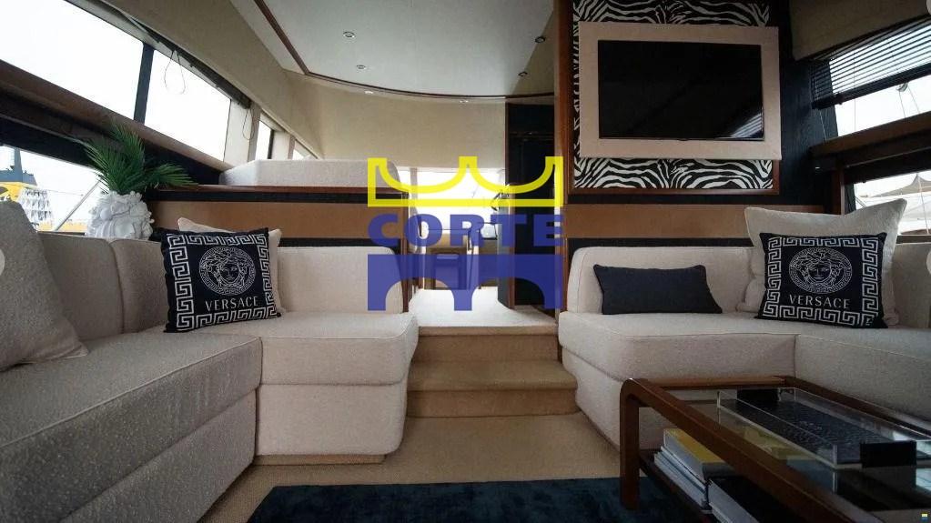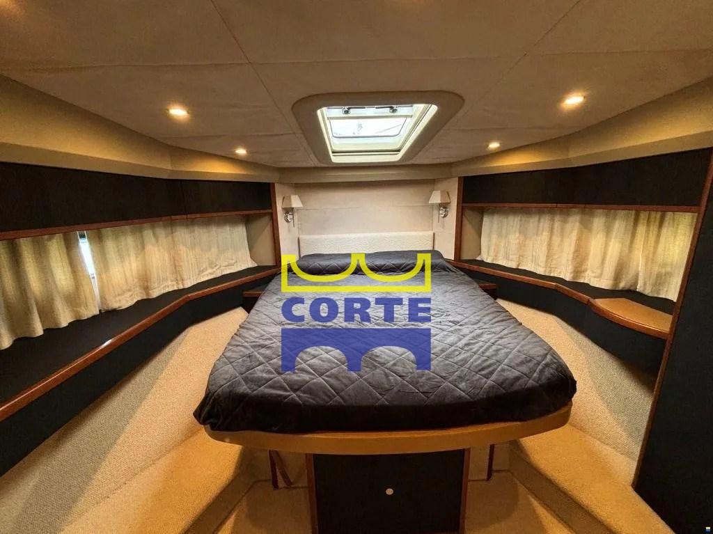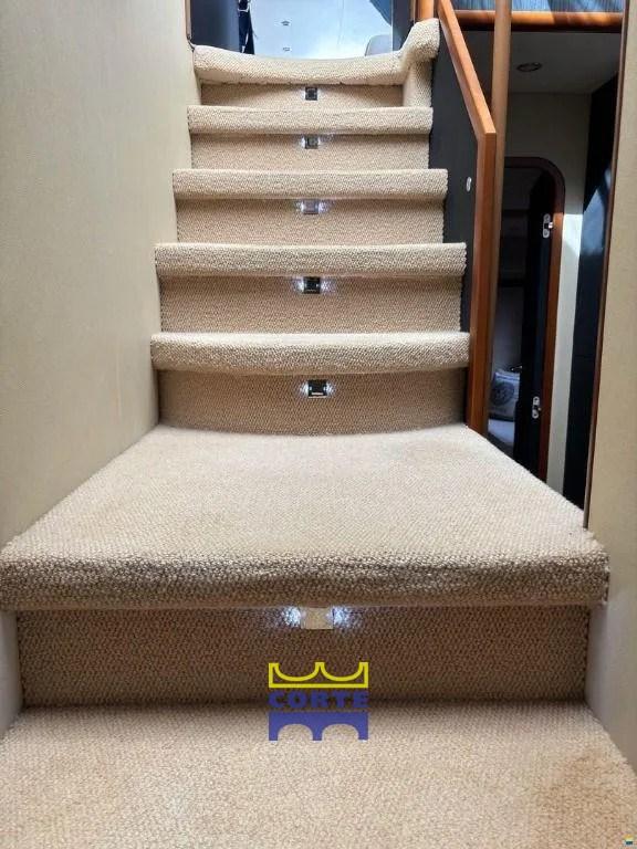 Cabina armatpriale matrimoniale con letto queen size, luci led di vari colori, bagno, cabina VIP a prua con bagno con box doccia, cabina ospiti con letti in piano, trasformabile inmmatrimoniale, cabina ospiti con letto a castello, bagno ospiti, cabina equipaggio con bagno privato.