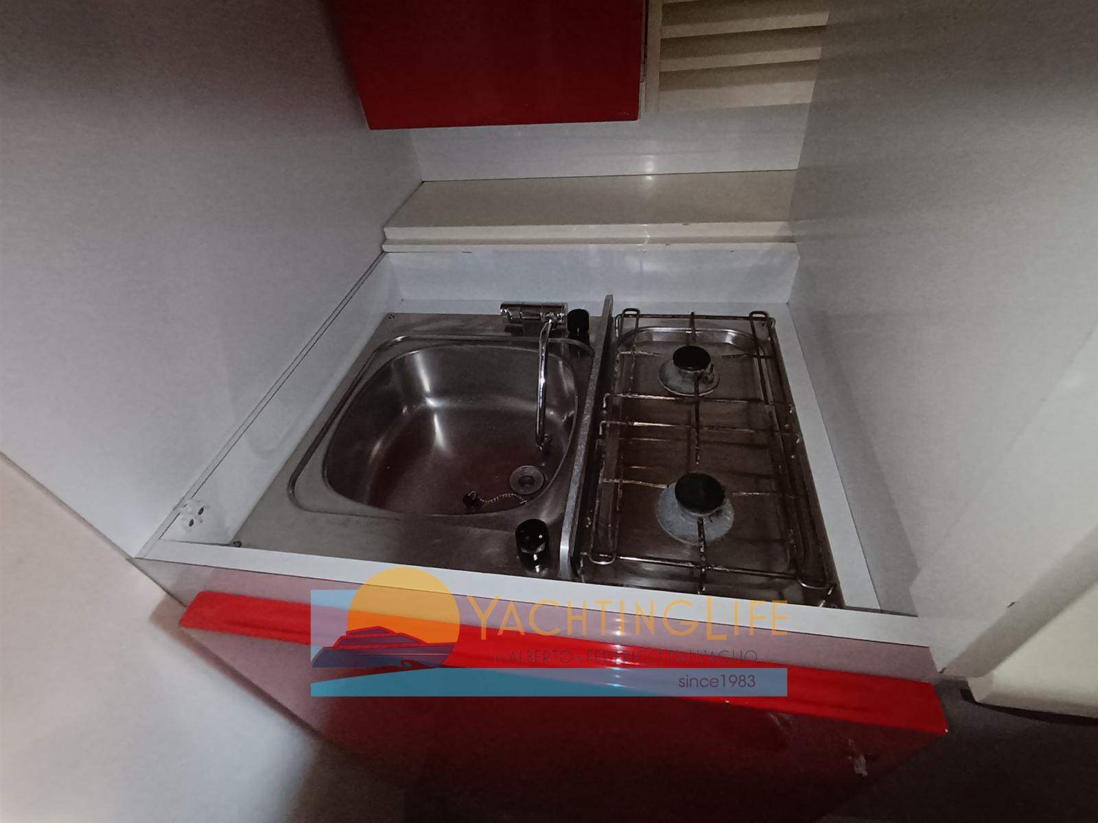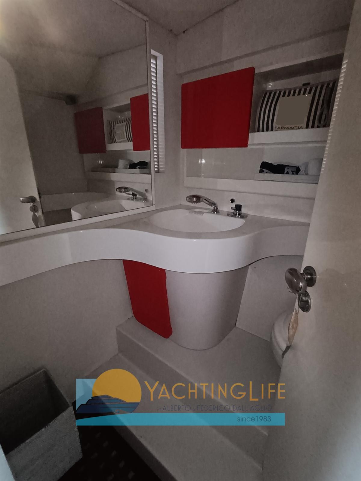 Allarme motore, Autoclave, Colorazione speciale (Scafo blu), Doccia esterna, Flap idraulici, Indicatori Flaps, Passerella (Idraulica), Piattaforma, Pompa di sentina automatica, Porta ingresso, Presa 220V banchina, Salpa Ancore Elettrico, Scaletta da bagno, Tavolo pozzetto, Tromba.