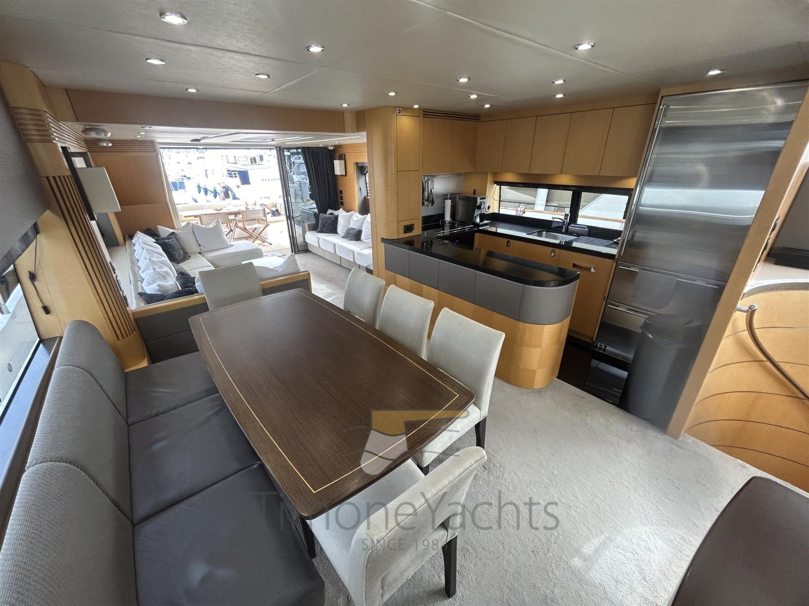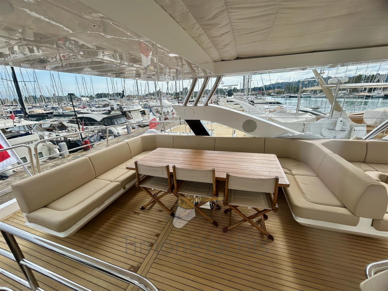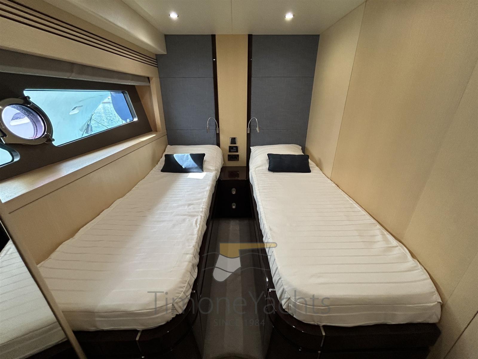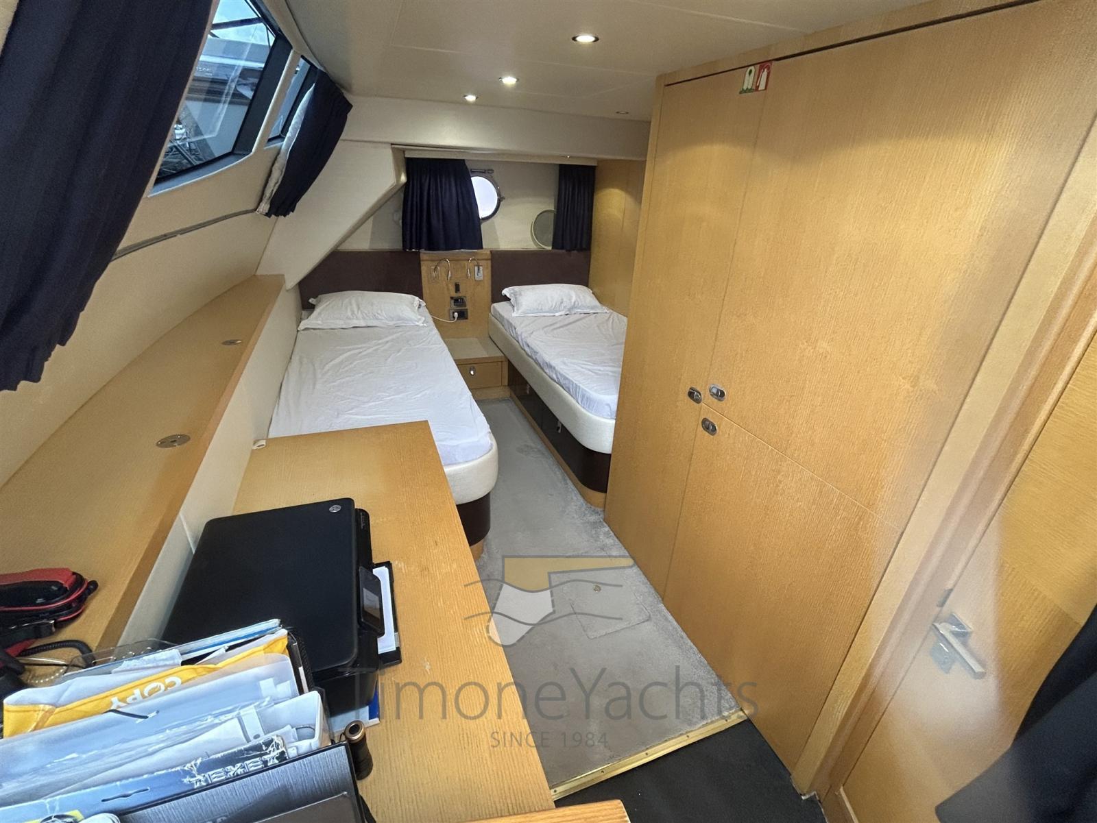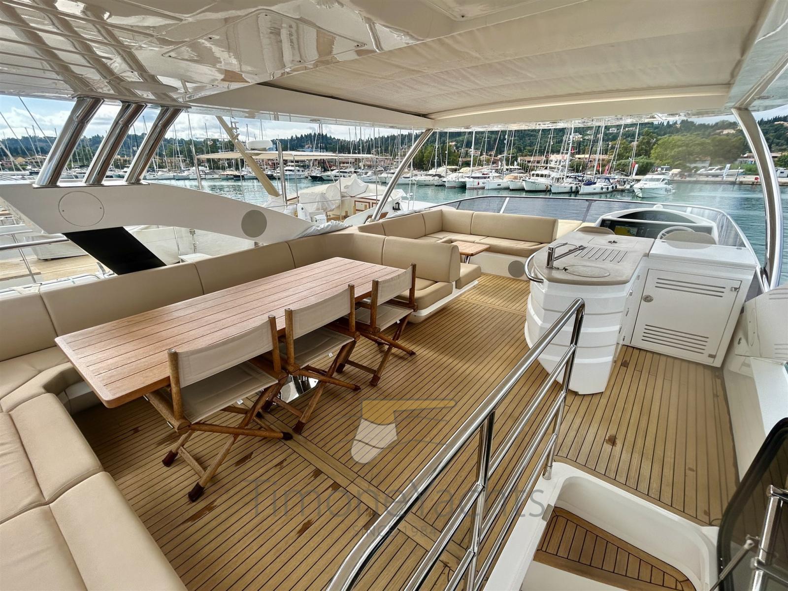 In acqua solo 4 mesi all'anno; ottima sia nell'estetica che nella manutenzione. Lunga lista di migliorie, salone rivisto con TV up/down, doppio verricello di ormeggio a prua, tender nuovo di zecca da 4 metri, stabilizzata sia in marcia che zero speed. Quattro cabine ospiti + una fantastica cabina equipaggio con due letti singoli a poppa (realmente una 5' cabina). Splendide le zone fly e prua.