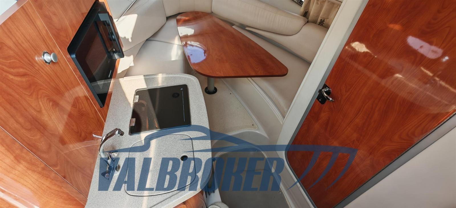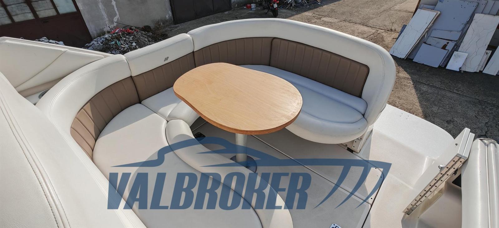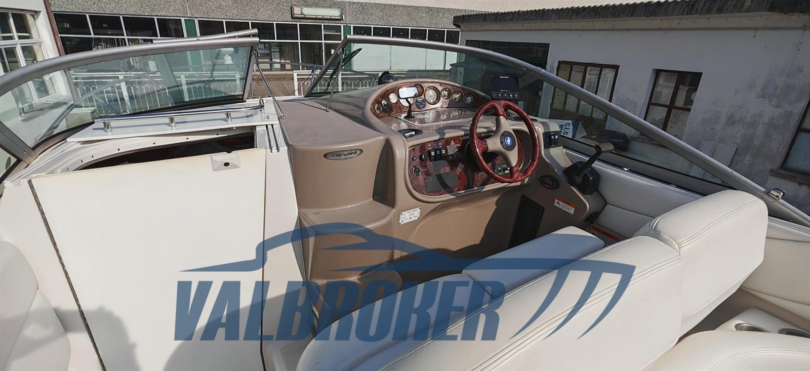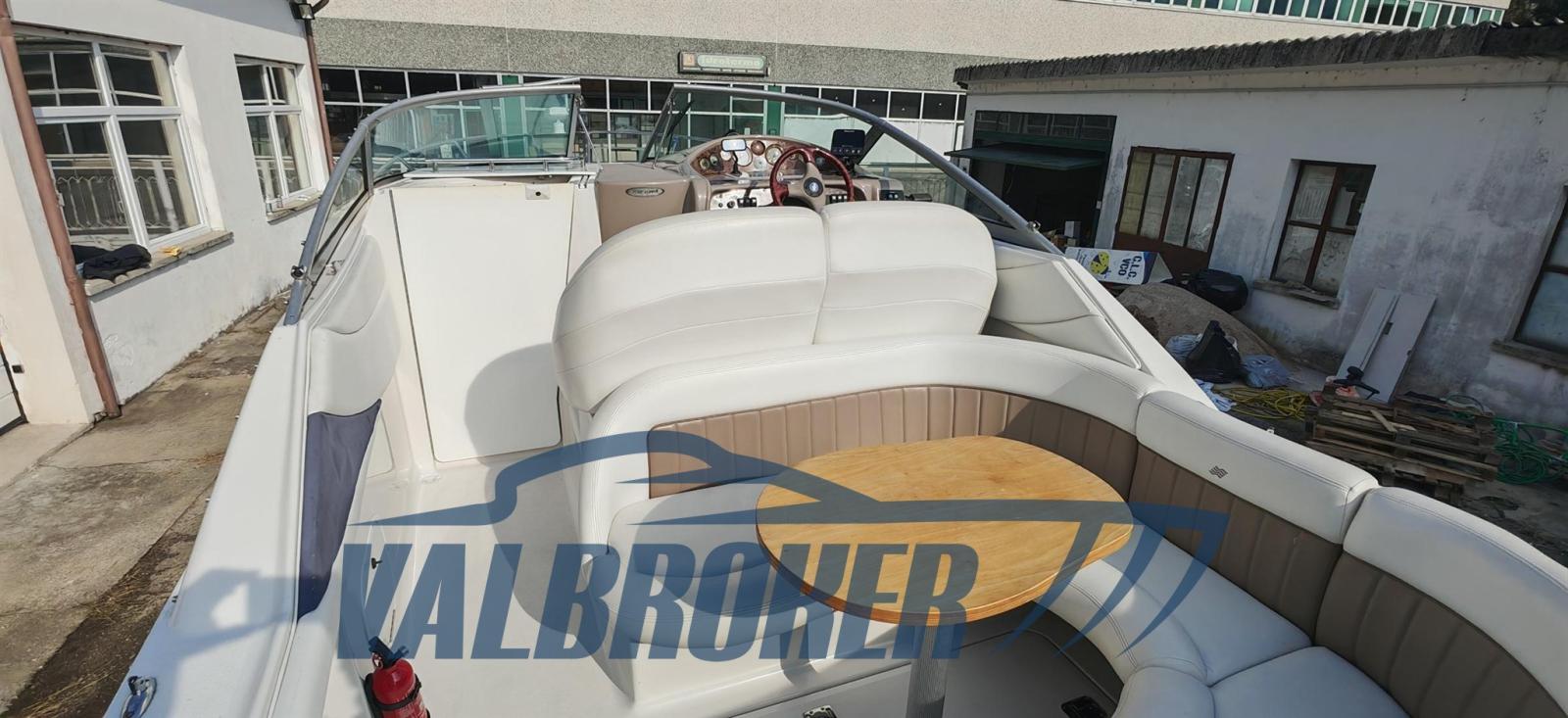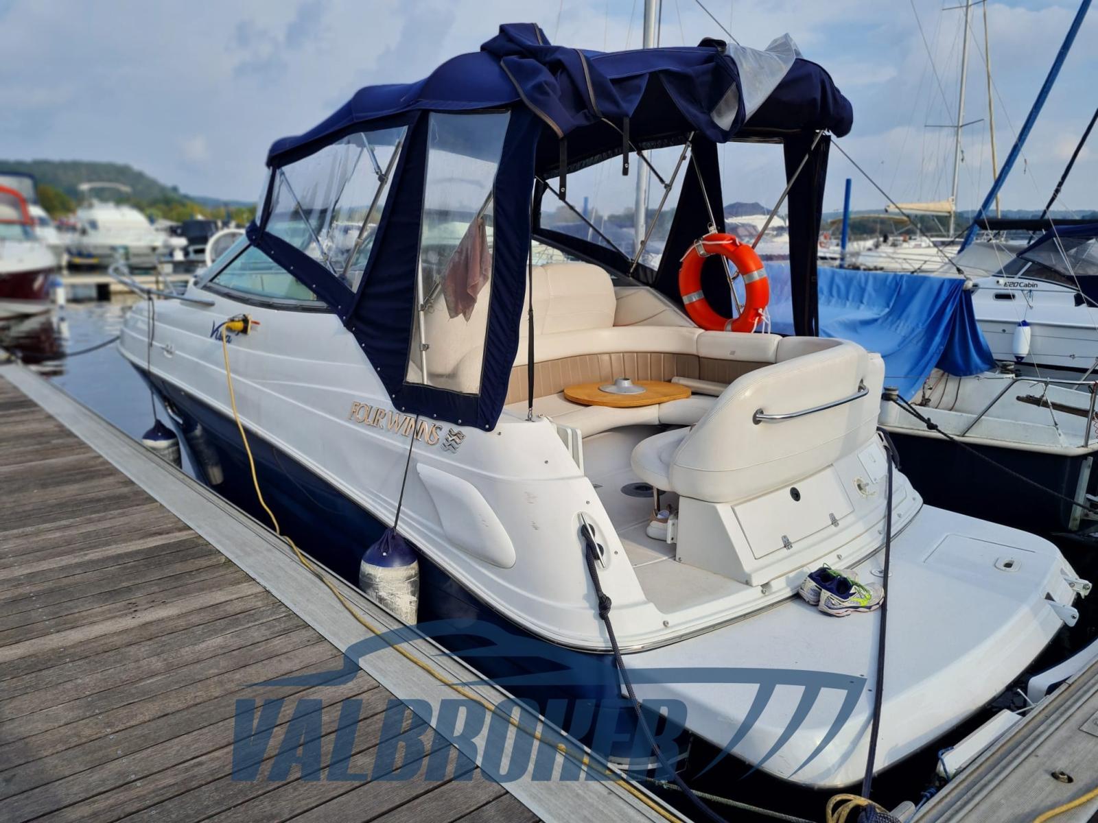 Cruiser cabinato dal rinomato cantiere americano Four Winns. Usato solo lago. 1x280 HP Volvo Penta 5GXi V8. Pozzetto con dinette e tavolo pranzo. Ampia plancetta bagno. Cabina open space con dinette trasformabile in letto doppia di prua e letto matrimoniale di poppa. Bagno separato con WC, lavello in acciaio e doccia. Natante perfettamente mantenuto. Pronta navigare. Aprile 2025: carena portata a zero, rimosso vecchi strati di antivegetativa con sabbiatura, trattamento preventivo acqua-stop, primer epossidico, n. 2 mani di antivegetativa, anodi al magnesio nuovi e tagliando completo motore. Visibile presso Valbroker.