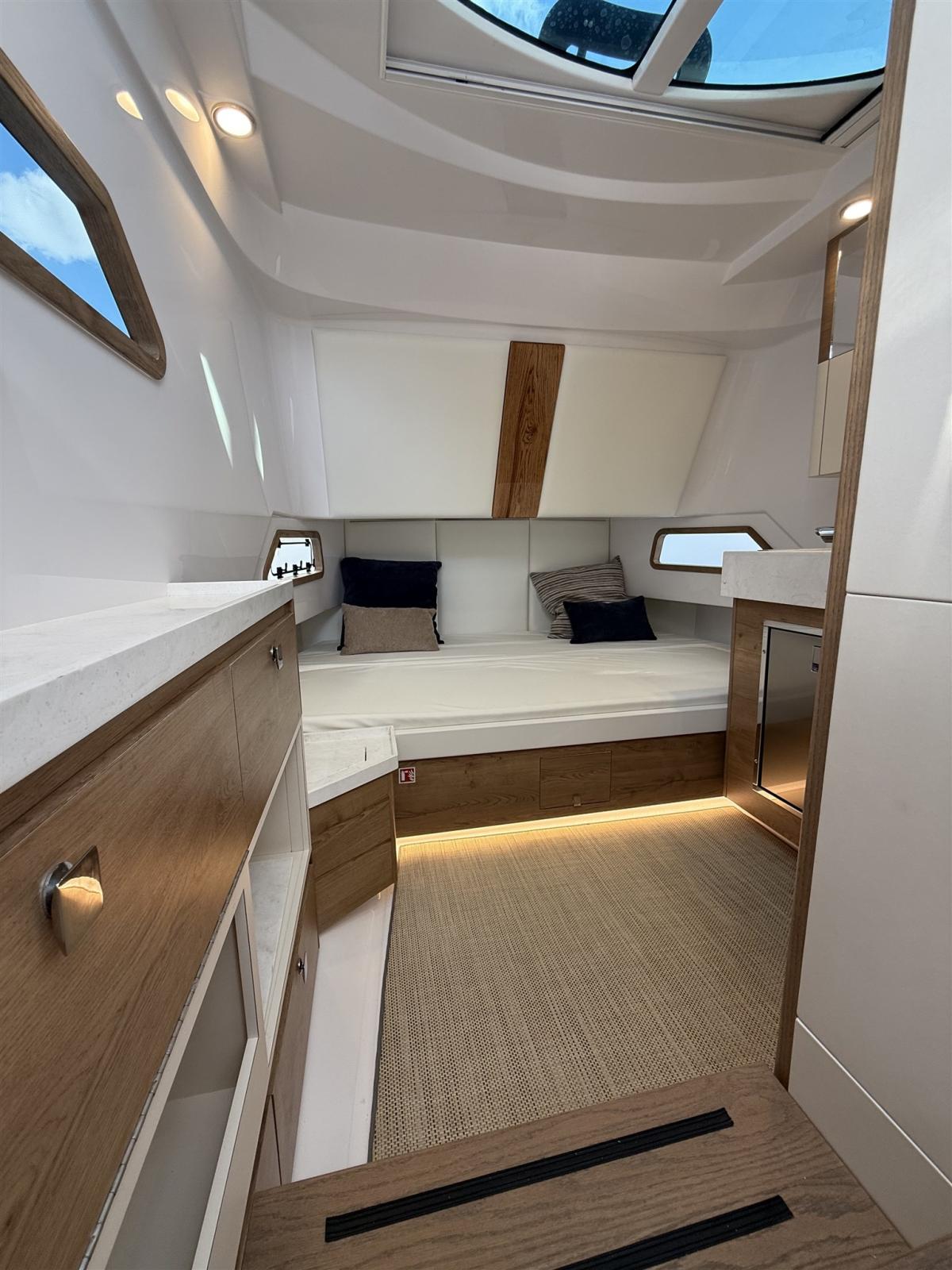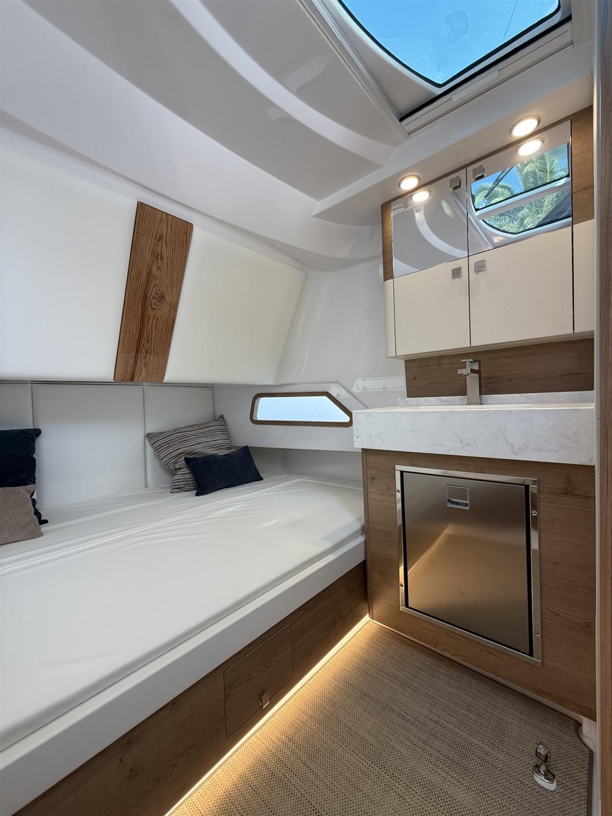 Acqua Calda, BBQ/ Grill, Boiler, Impianto acque nere, Indicatore del serbatoio del carburante, Indicatore del Serbatoio dell’Acqua, Prese interne 12v, Prese interne 220v, Serbatoio Acque Nere, WC marino elettrico.