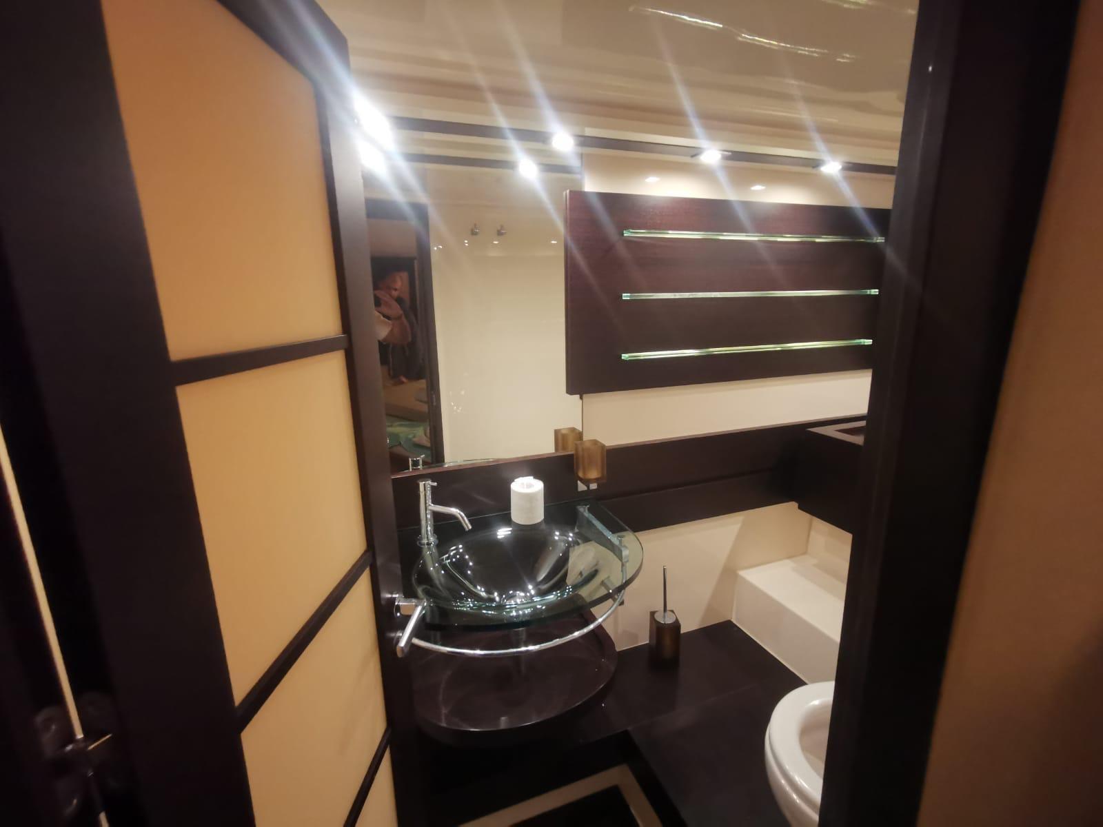 Acqua Calda, BBQ/ Grill, Boiler, Clima reversibile, Dissalatore, Impianto acque nere, Indicatore del serbatoio del carburante, Indicatore del Serbatoio dell’Acqua, Pavimento interno in legno, Prese interne 12v, Prese interne 220v, Serbatoio Acque Nere, 4 WC marino elettrico.