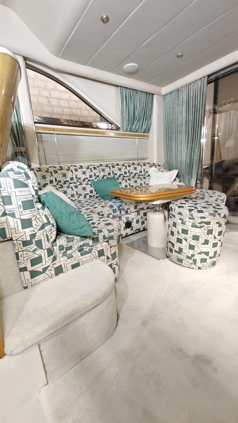 Interni: Gli interni sono lussuosamente progettati, offrendo comfort ed eleganza. C'è una cucina ben attrezzata, un salone con posti a sedere e finestre panoramiche e diverse cabine.