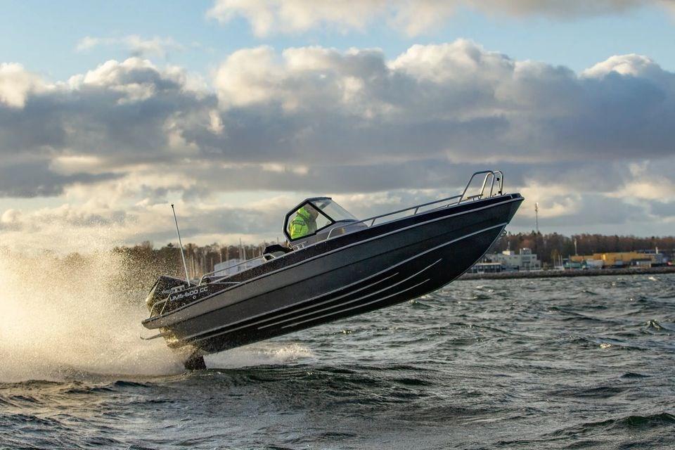 UMS 655 DC con uno Yamaha VMAX da 150 CV e il rimorchio Vanclaes Excelleron Wave abbinato come barca dimostrativa con le seguenti attrezzature: