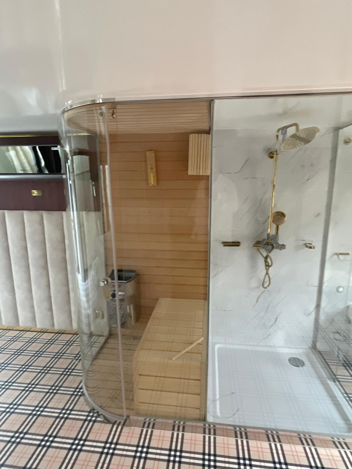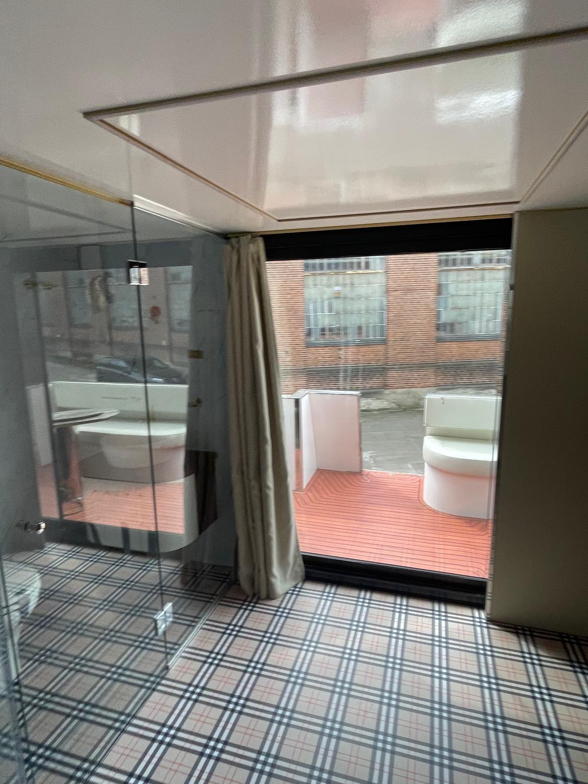Elegante casa galleggiante con una sola stanza e sauna esclusiva di design Burberry