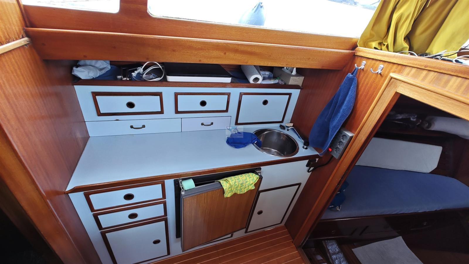 La tuga è stata costruita a Marina Baltika, Travemünde nella migliore lavorazione artigianale e offre due cabine e un ampio salone di coperta.